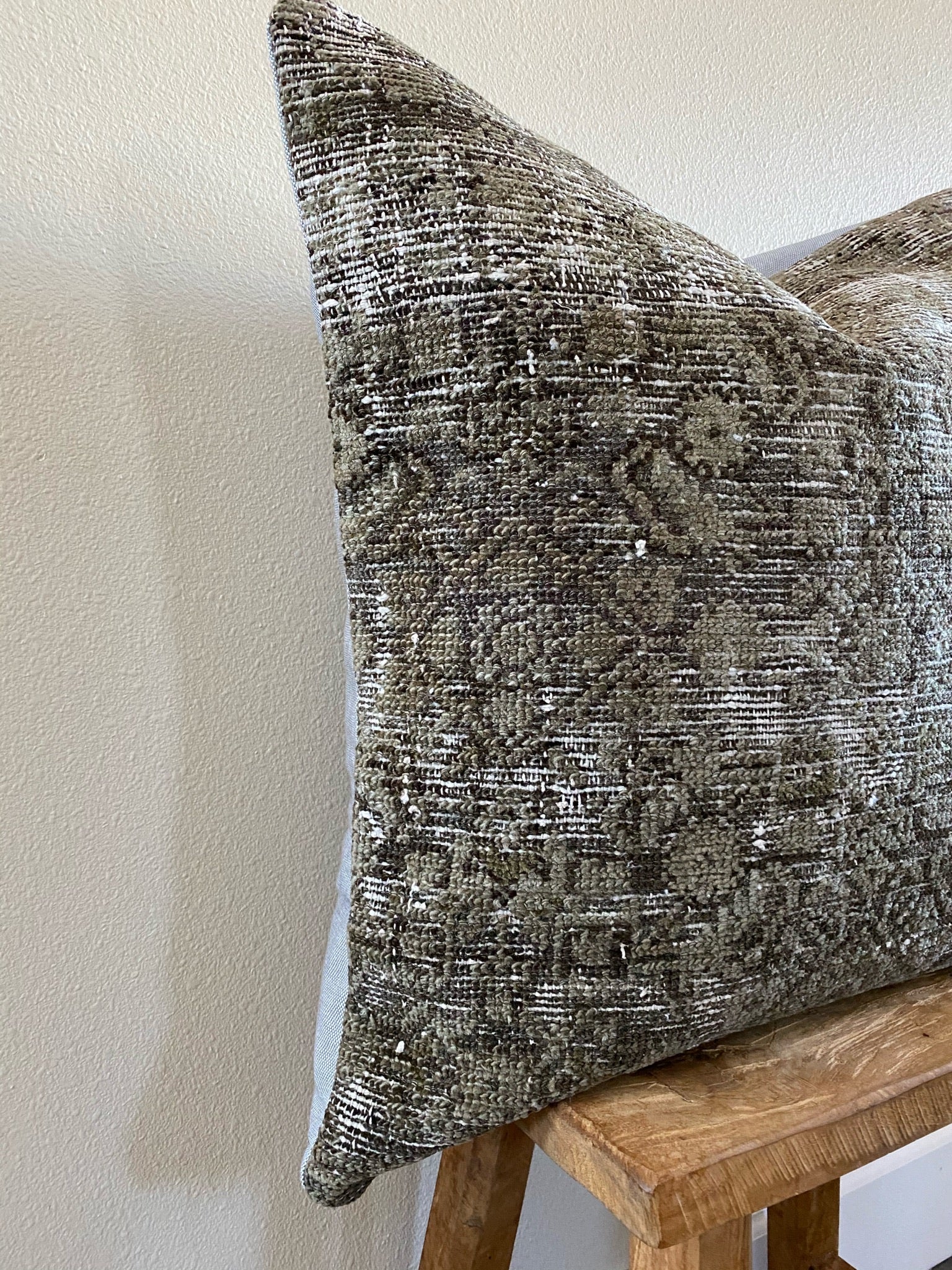 Front side of pillow is made from a vintage Persian rug that is 80-90 years old.