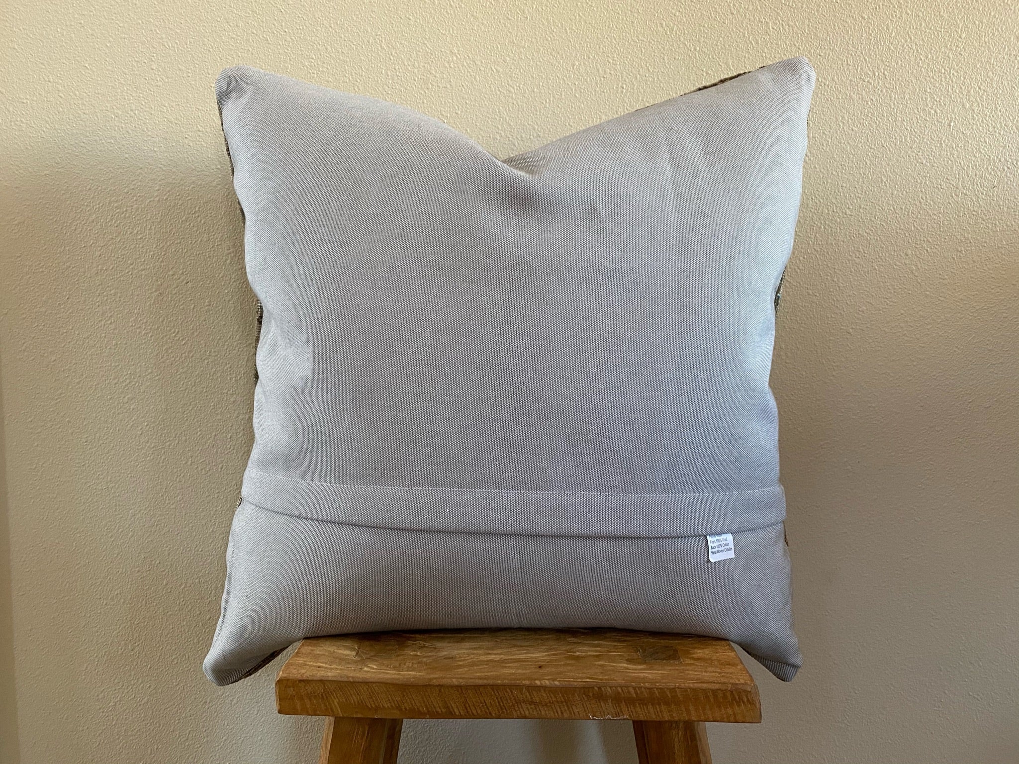 Photos were taken in natural daylight. Please note that the colors of the pillow cover may appear differently depending on the lighting in your home. Due to the nature of vintage rugs, there may be slight imperfections in its wear, dimensions, and color.