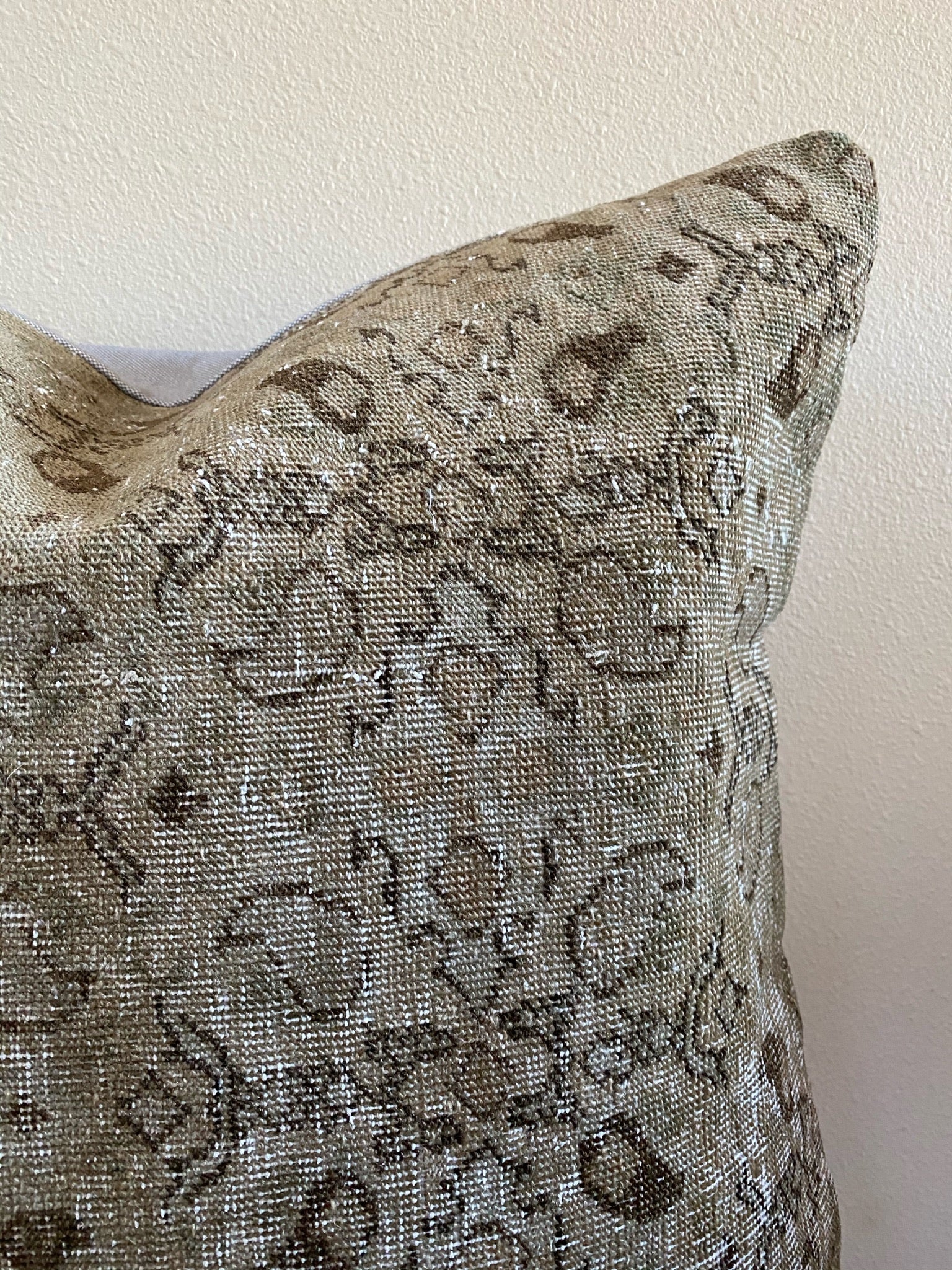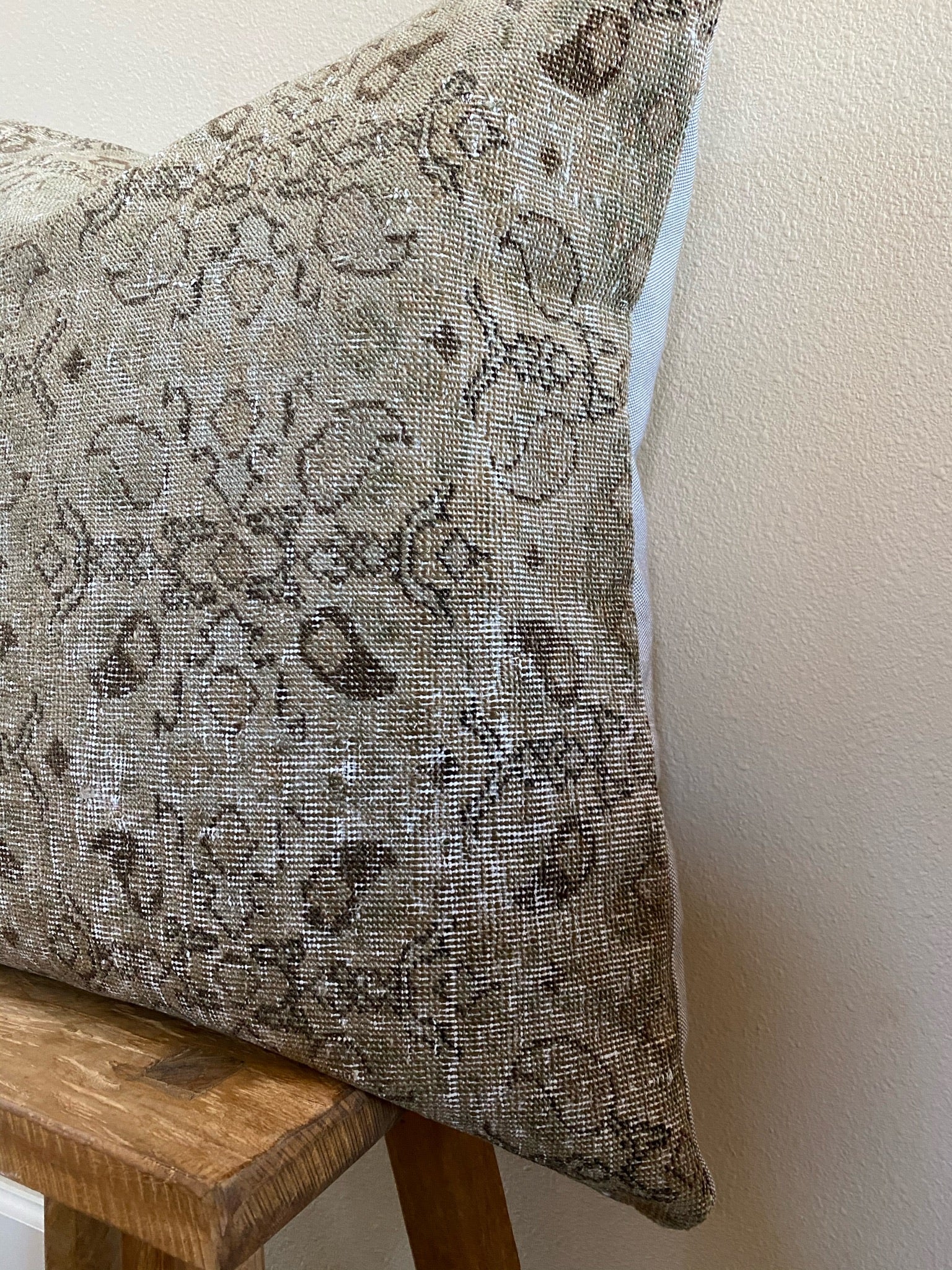 Front side of pillow is made from a vintage Persian rug that is 80-90 years old.