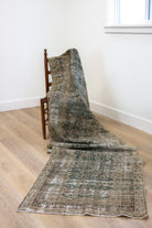 Because of the nature of this item, there may be slight imperfections in its wear, shape, dimensions, and color. Our rugs have been repaired over the years using various techniques. There might be evidence of these repairs through texture, look and feel. This is all part of the rich history and story of each artistic piece. These markings are not considered defective.