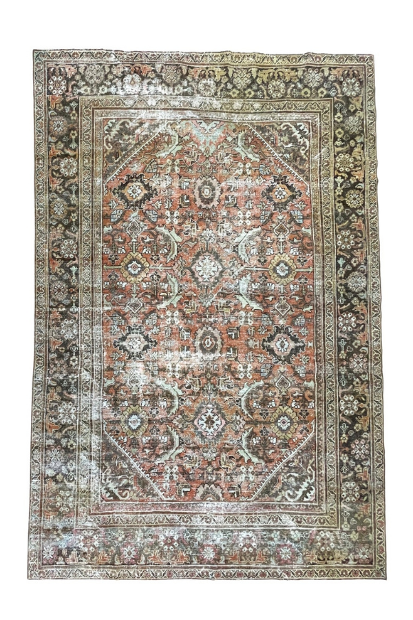 Because of the nature of this item, there may be slight imperfections in its wear, shape, dimensions, and color. Our rugs have been repaired over the years using various techniques. There might be evidence of these repairs through texture, look and feel. This is all part of the rich history and story of each artistic piece. These markings are not considered defective.