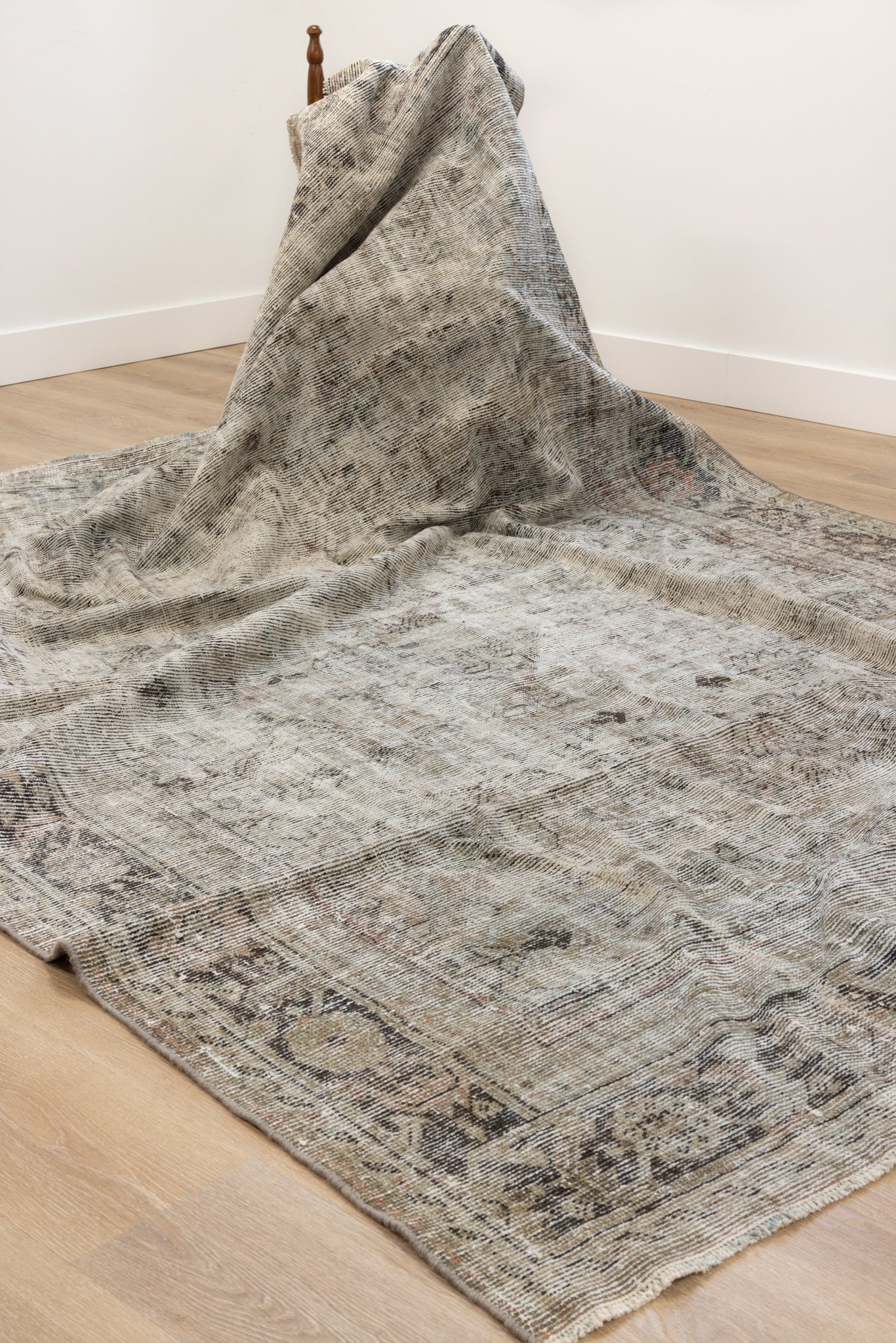 This rug has been professionally cleaned. Spot clean using the blotting technique, using a damp cloth. Take to a professional cleaner if the rug requires a deeper clean.