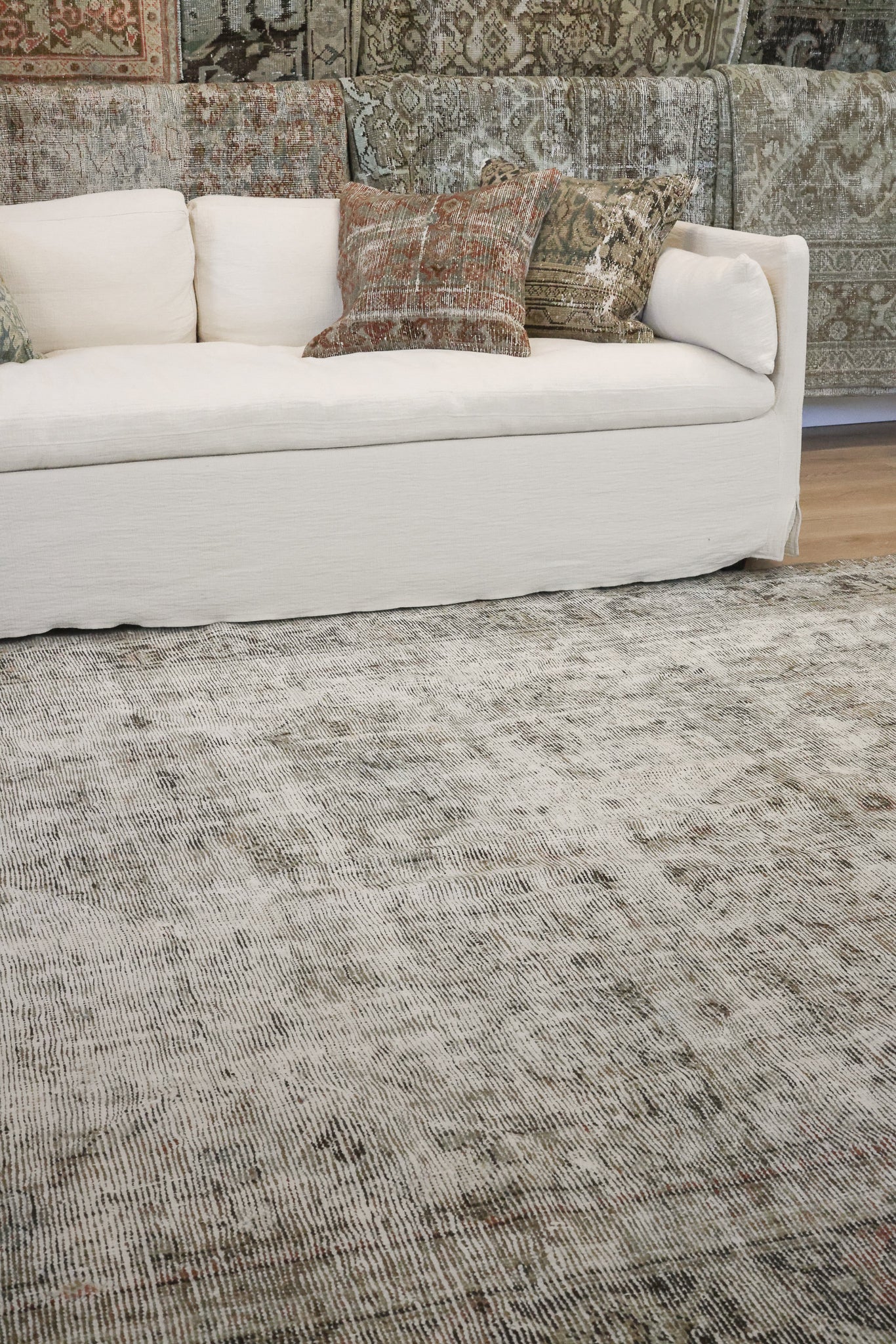 The photos on this listing were taken on a professional camera with studio lighting, which mimics natural lighting (neither warm or cool, but neutral). The screen of which you view these photos may change how this rug’s coloring is portrayed. On the iPhone, we recommend viewing these photos with “True Tone” turned off (you can turn this feature off by holding down on the brightness setting). Please note that the colors of the rug may appear differently depending on the lighting in your home.