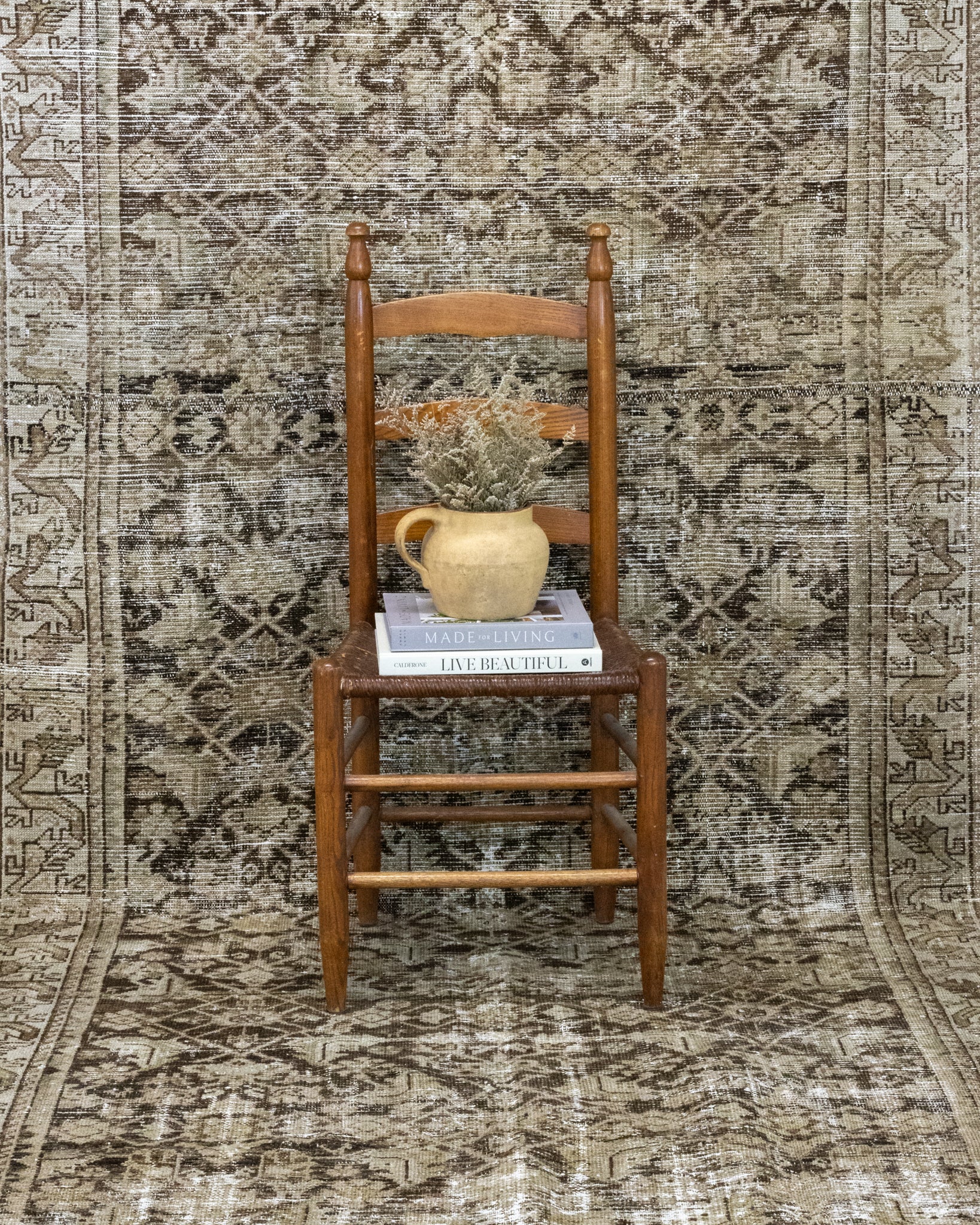 Please note that because this is a vintage rug, there may be slight imperfections in its wear, dimensions, and color. Our rugs have been repaired over the years, using various techniques. There might be evidence of these repairs through texture, look and feel. This is all part of the rich history and story of each artistic piece. These markings are not considered defective.