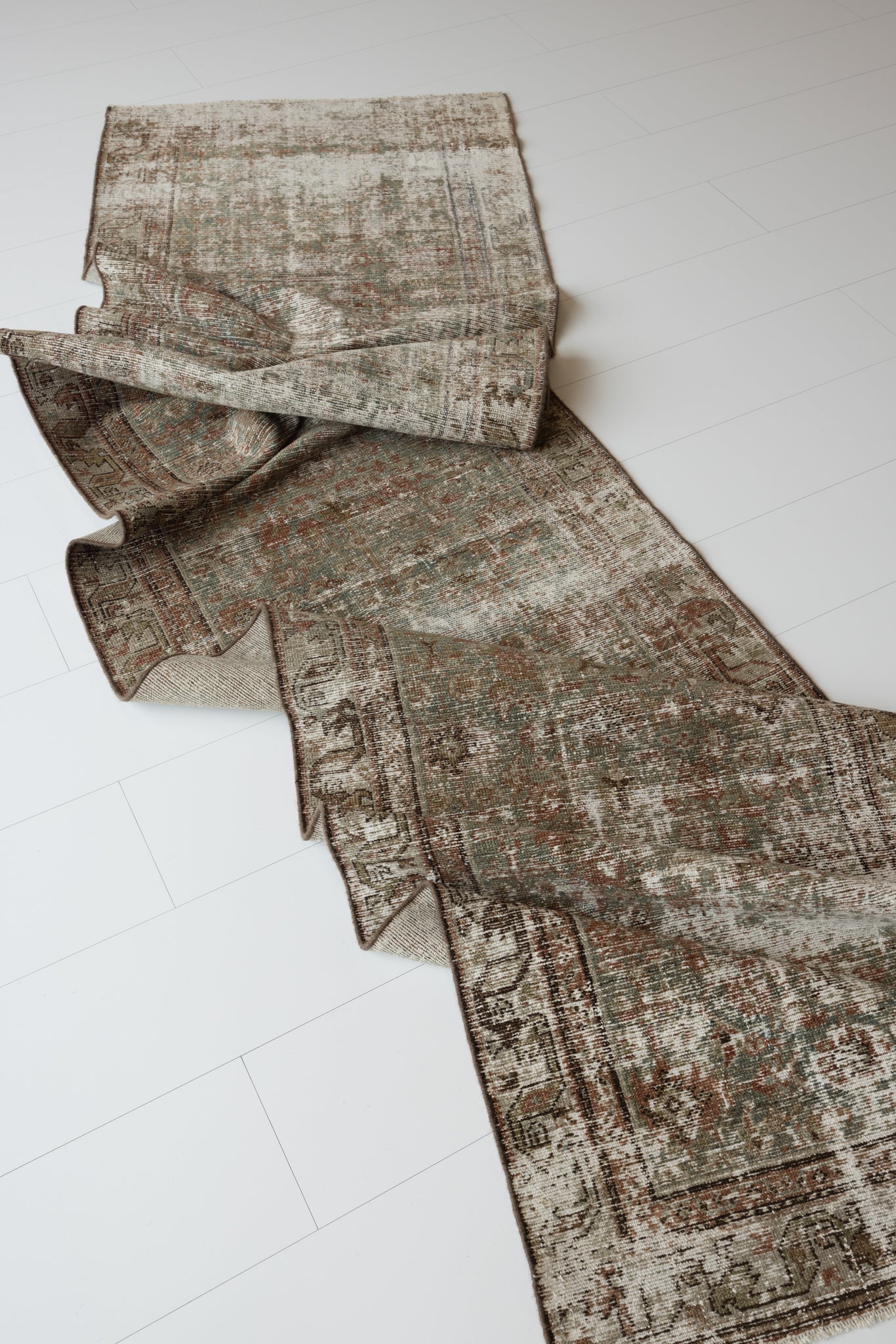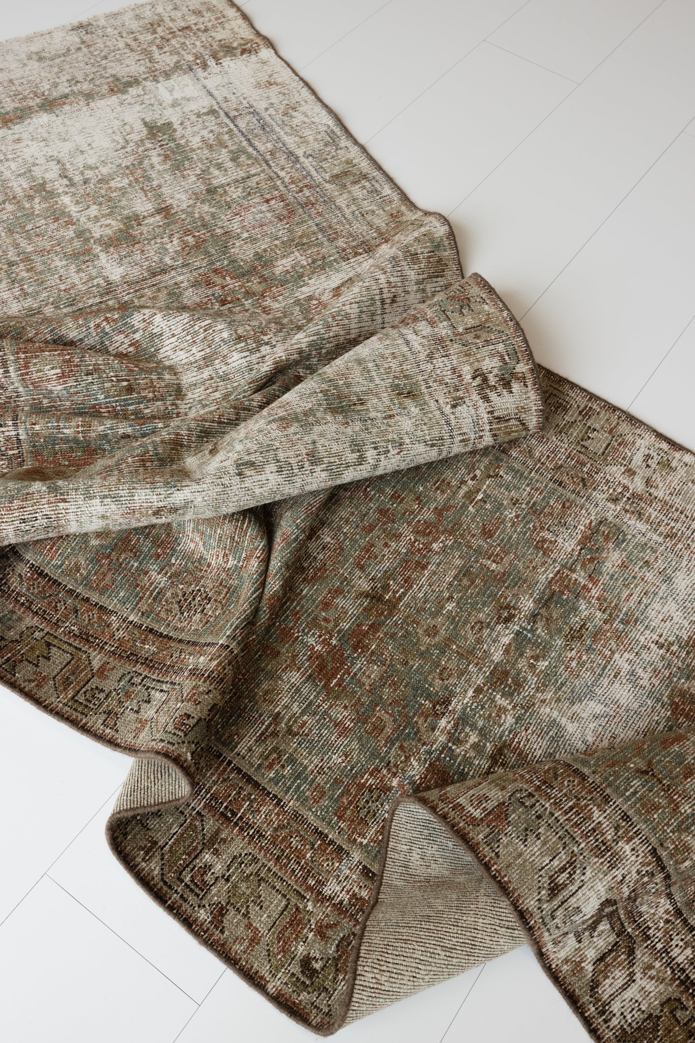 Because of the nature of this item, there may be slight imperfections in its wear, shape, dimensions, and color. Our rugs have been repaired over the years, using various techniques. There might be evidence of these repairs through texture, look and feel. This is all part of the rich history and story of each artistic piece. These markings are not considered defective.