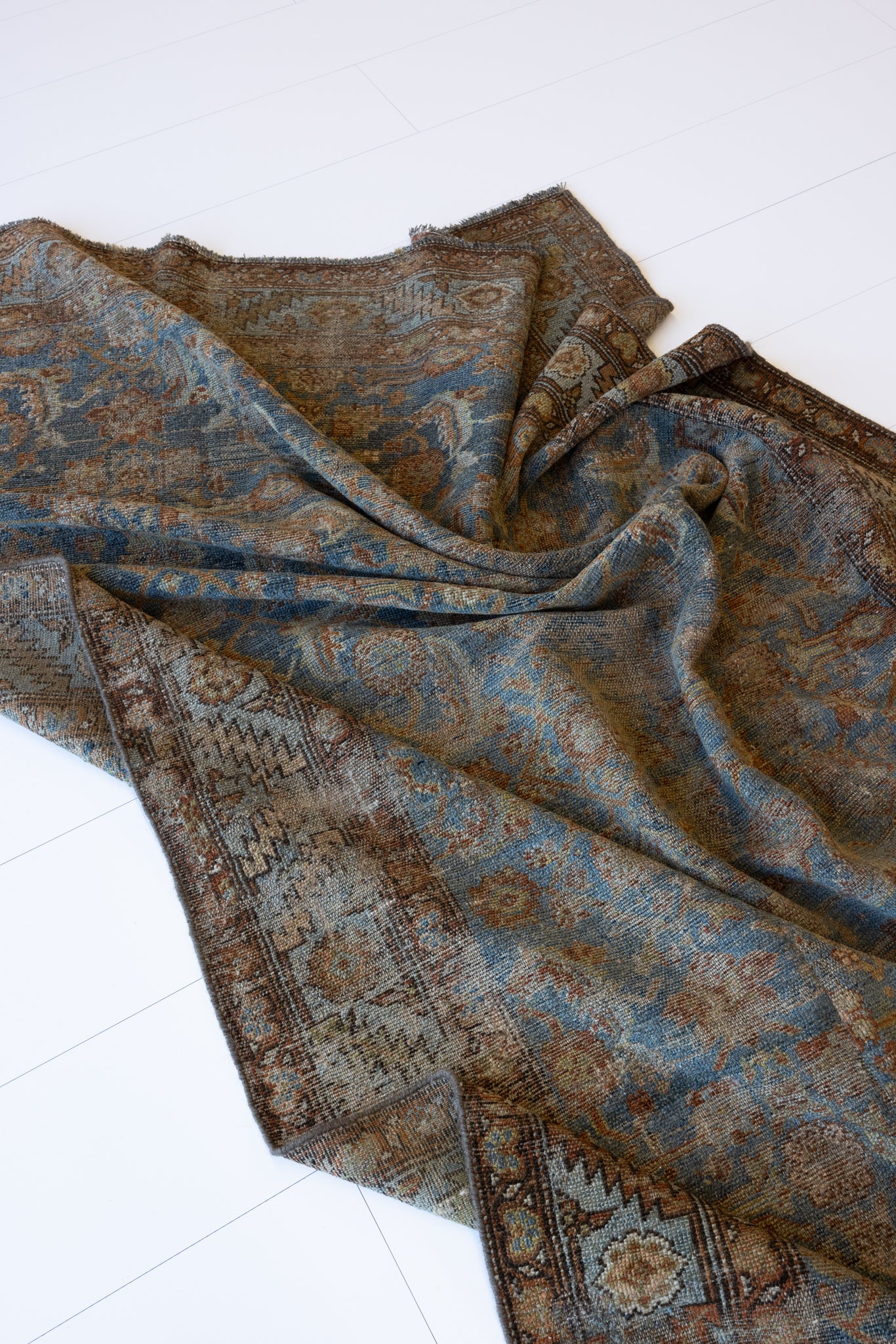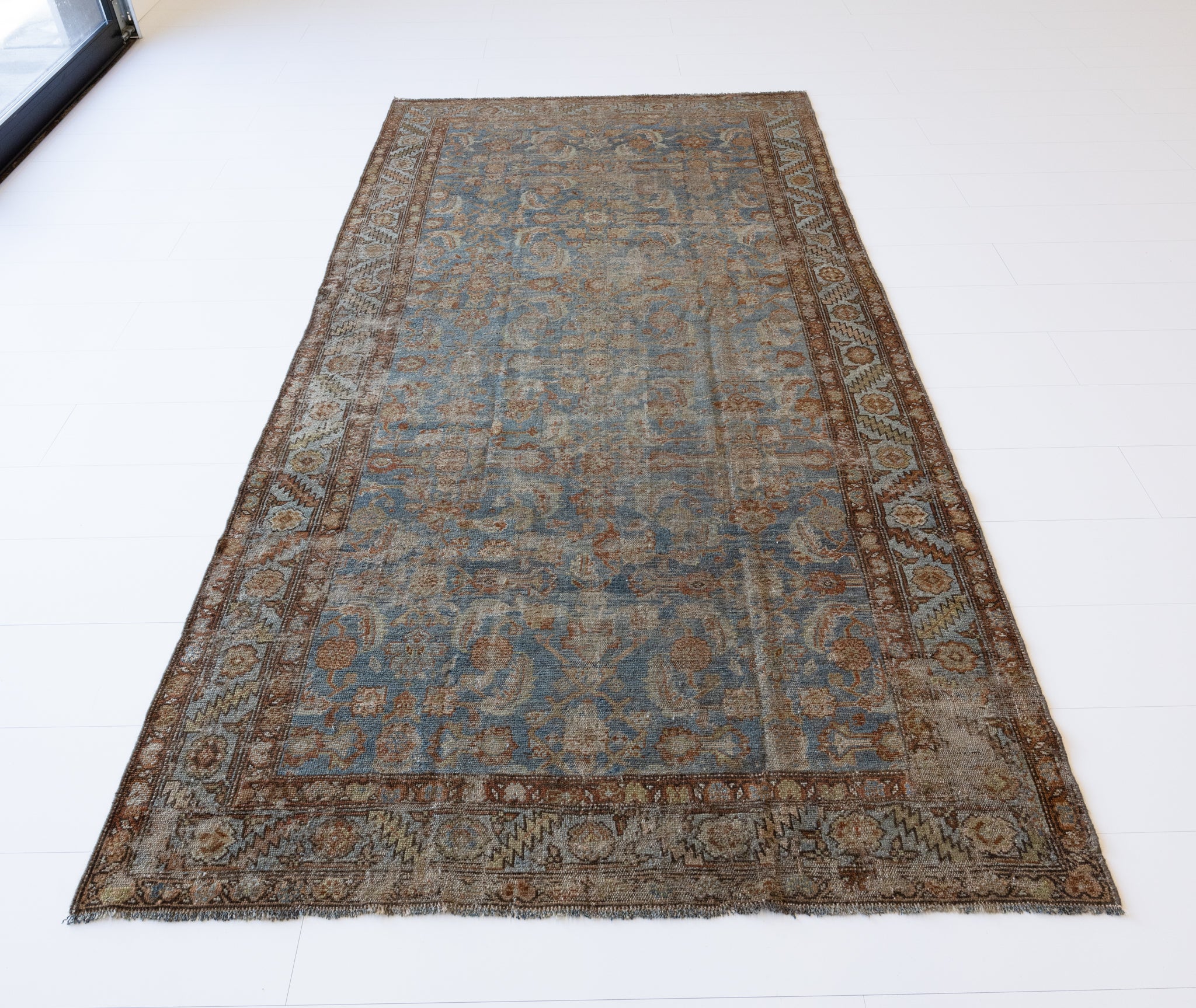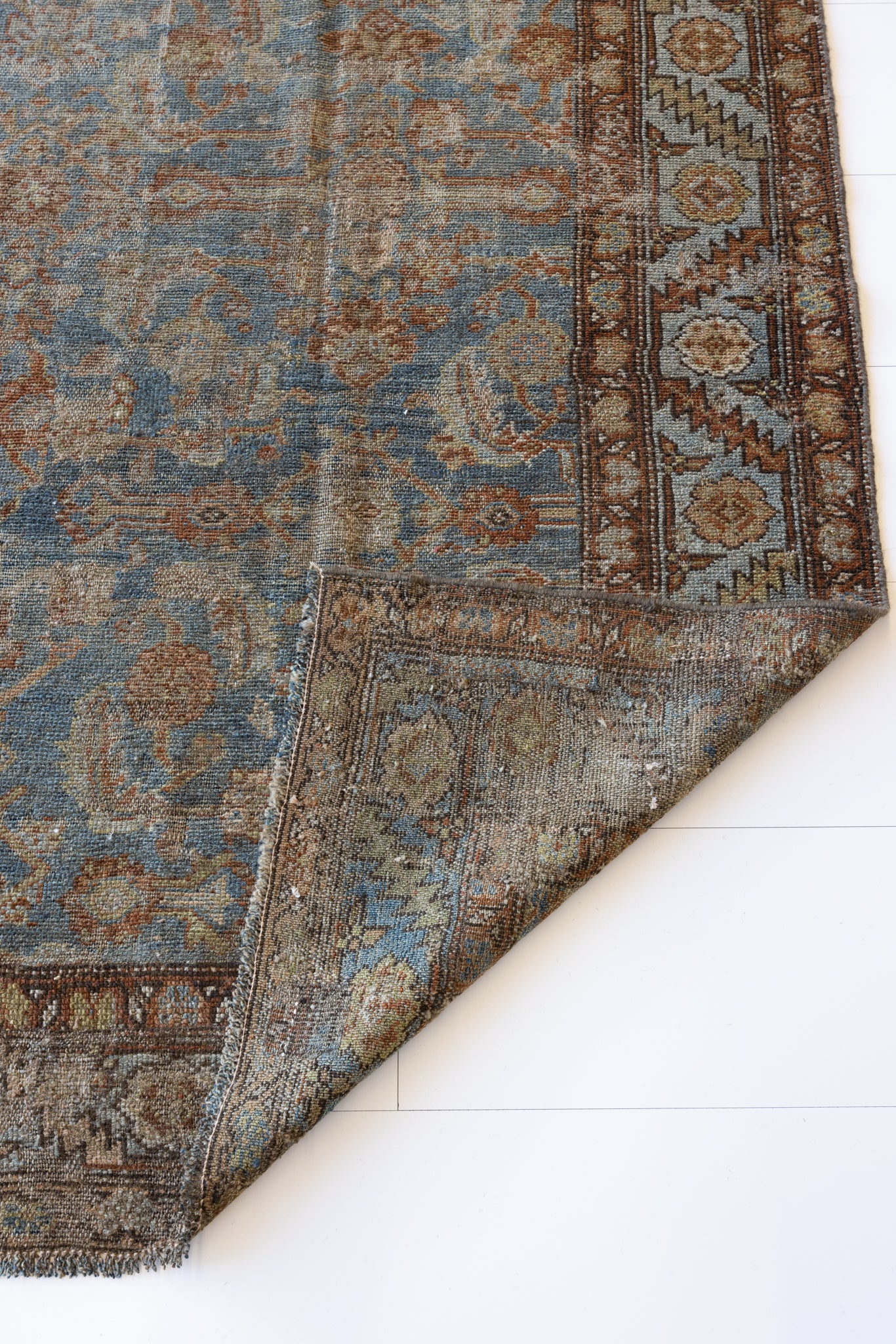 Because of the nature of this item, there may be slight imperfections in its wear, shape, dimensions, and color. Our rugs have been repaired over the years, using various techniques. There might be evidence of these repairs through texture, look and feel. This is all part of the rich history and story of each artistic piece. These markings are not considered defective.