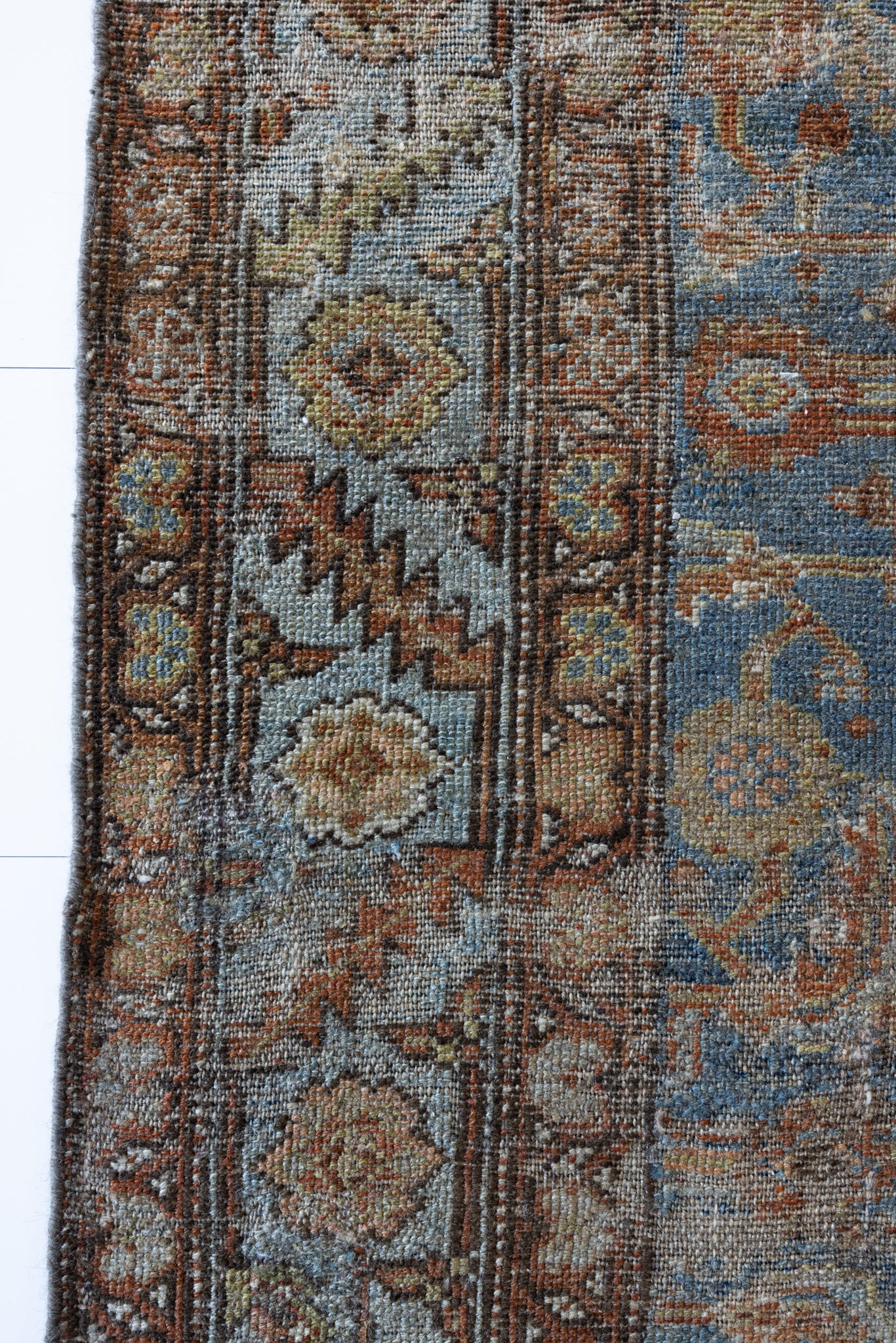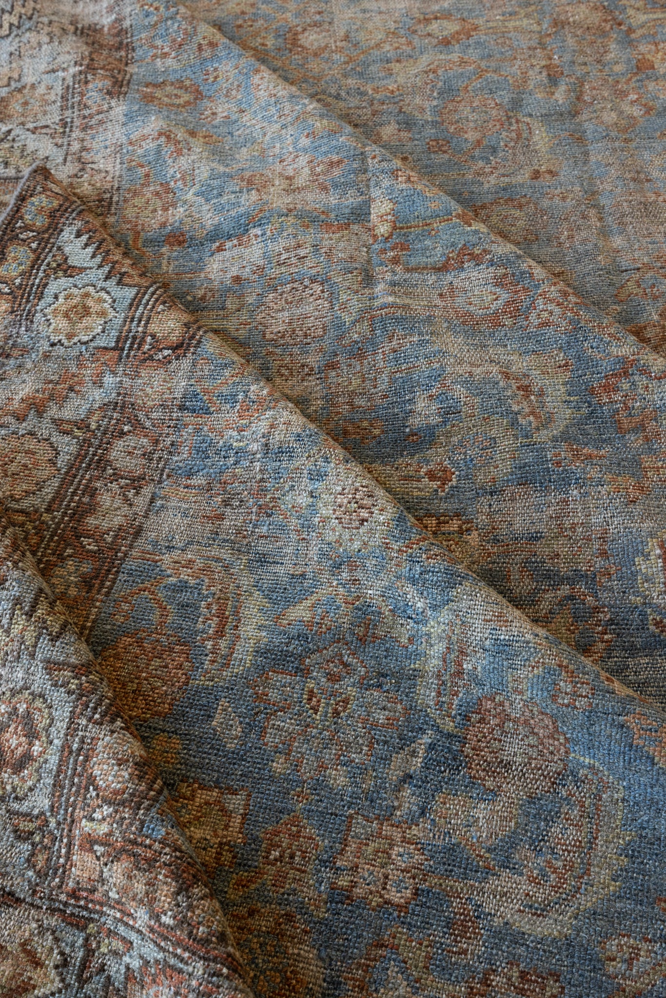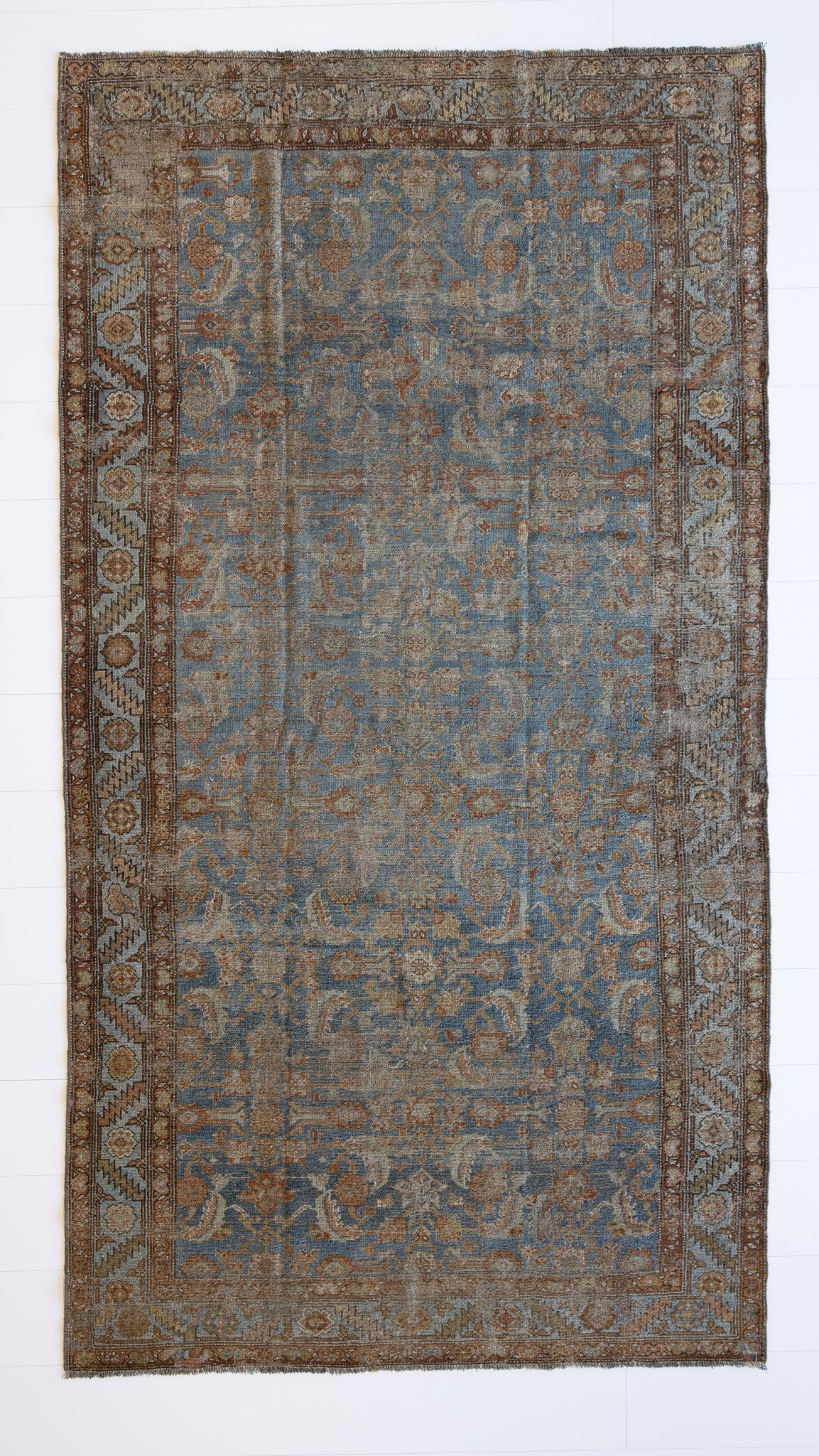 Because of the nature of this item, there may be slight imperfections in its wear, shape, dimensions, and color. Our rugs have been repaired over the years, using various techniques. There might be evidence of these repairs through texture, look and feel. This is all part of the rich history and story of each artistic piece. These markings are not considered defective.