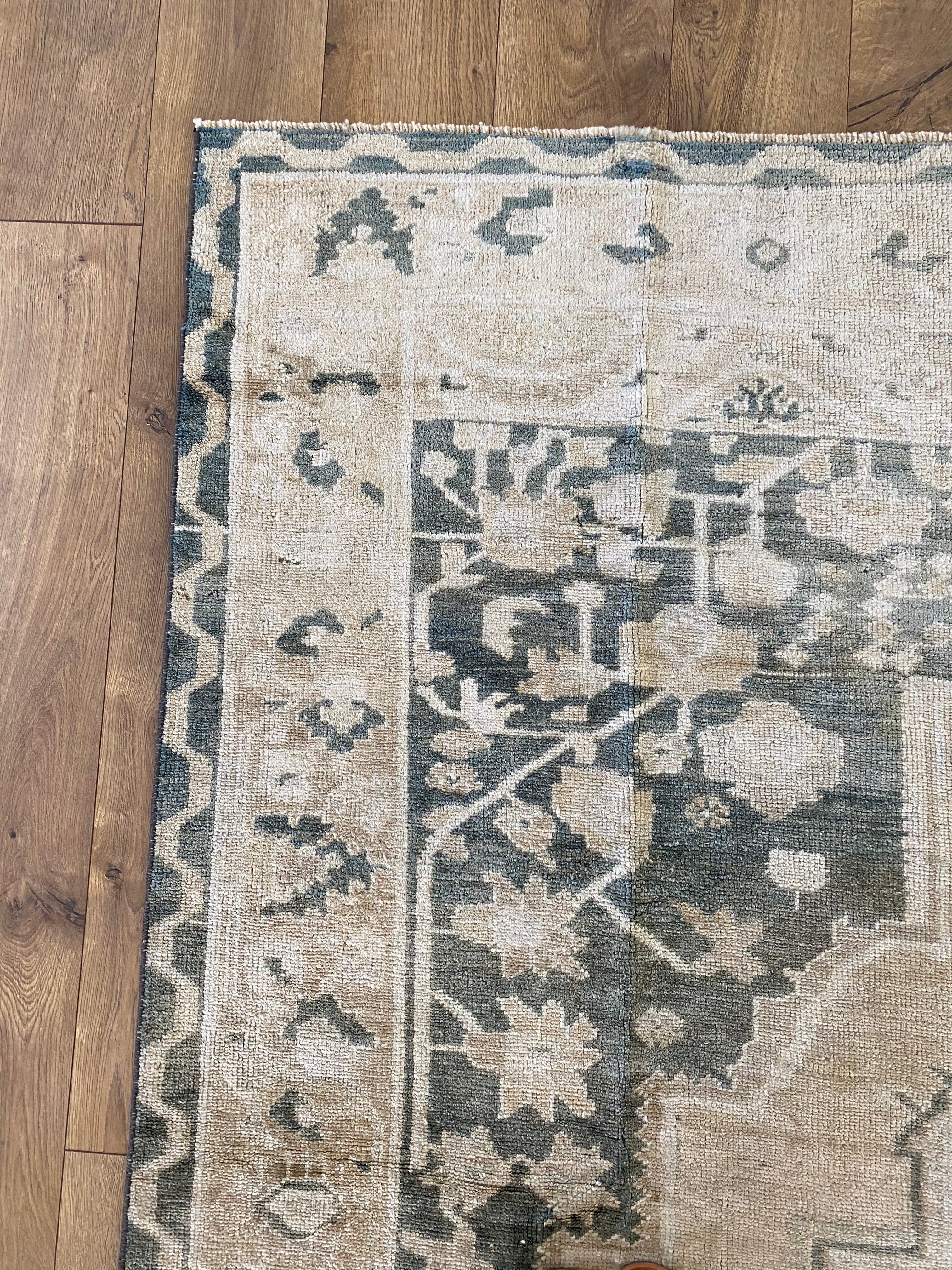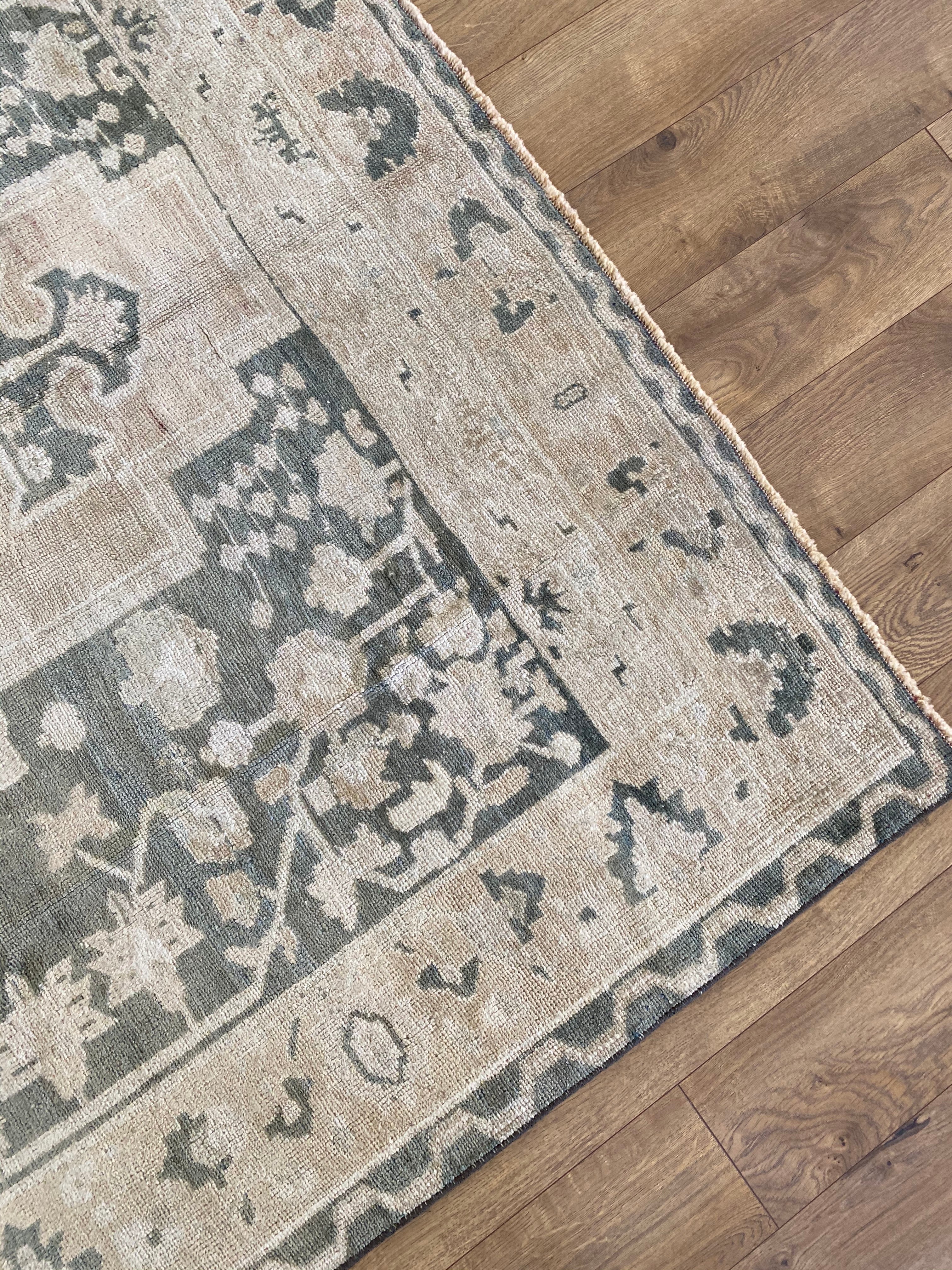 **The photos do not quite pick up the blue/green tones in this rug as it appears in-person**
