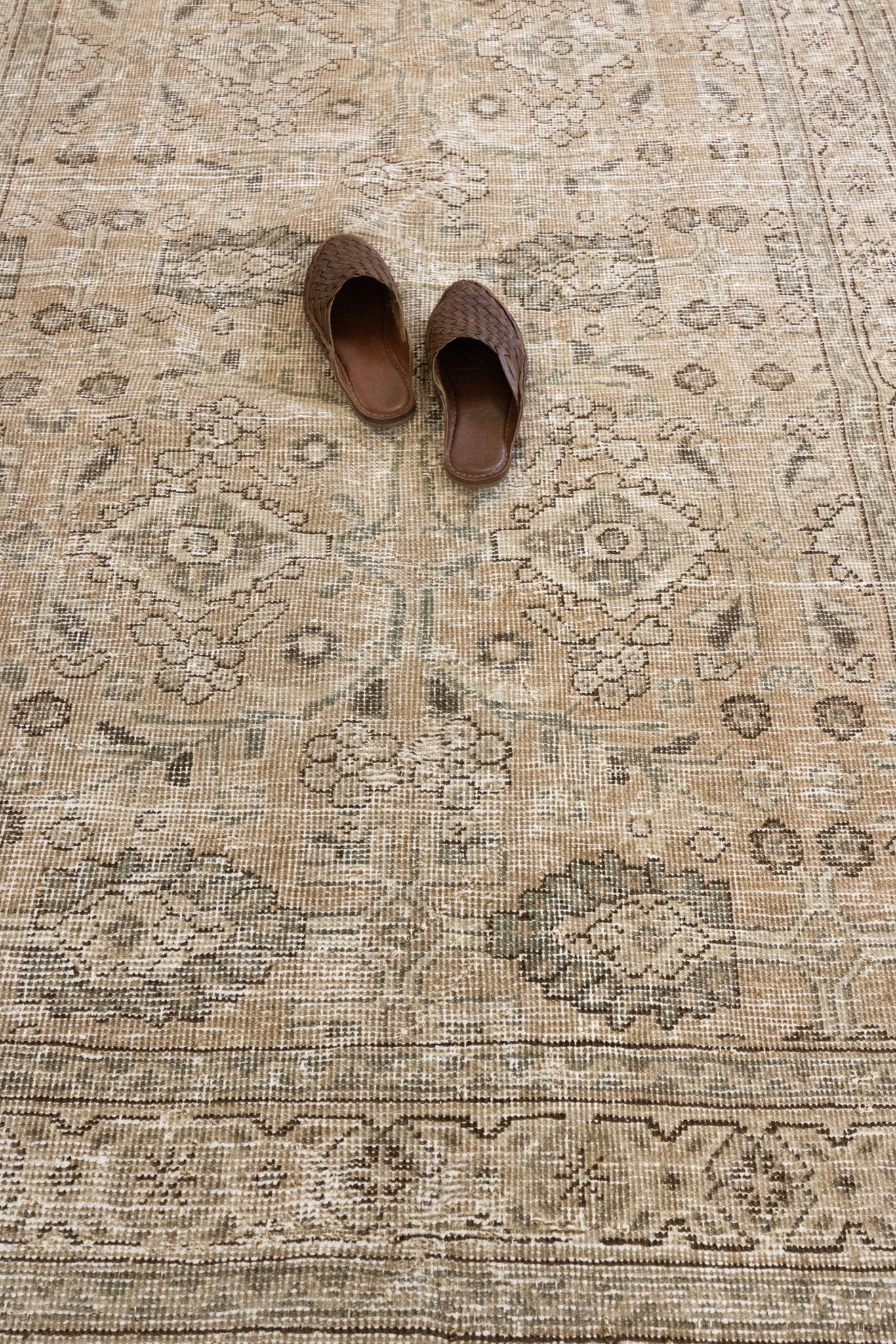 Because of the nature of this item, there may be slight imperfections in its wear, shape, dimensions, and color. Our rugs have been repaired over the years using various techniques. There might be evidence of these repairs through texture, look and feel. This is all part of the rich history and story of each artistic piece. These markings are not considered defective.