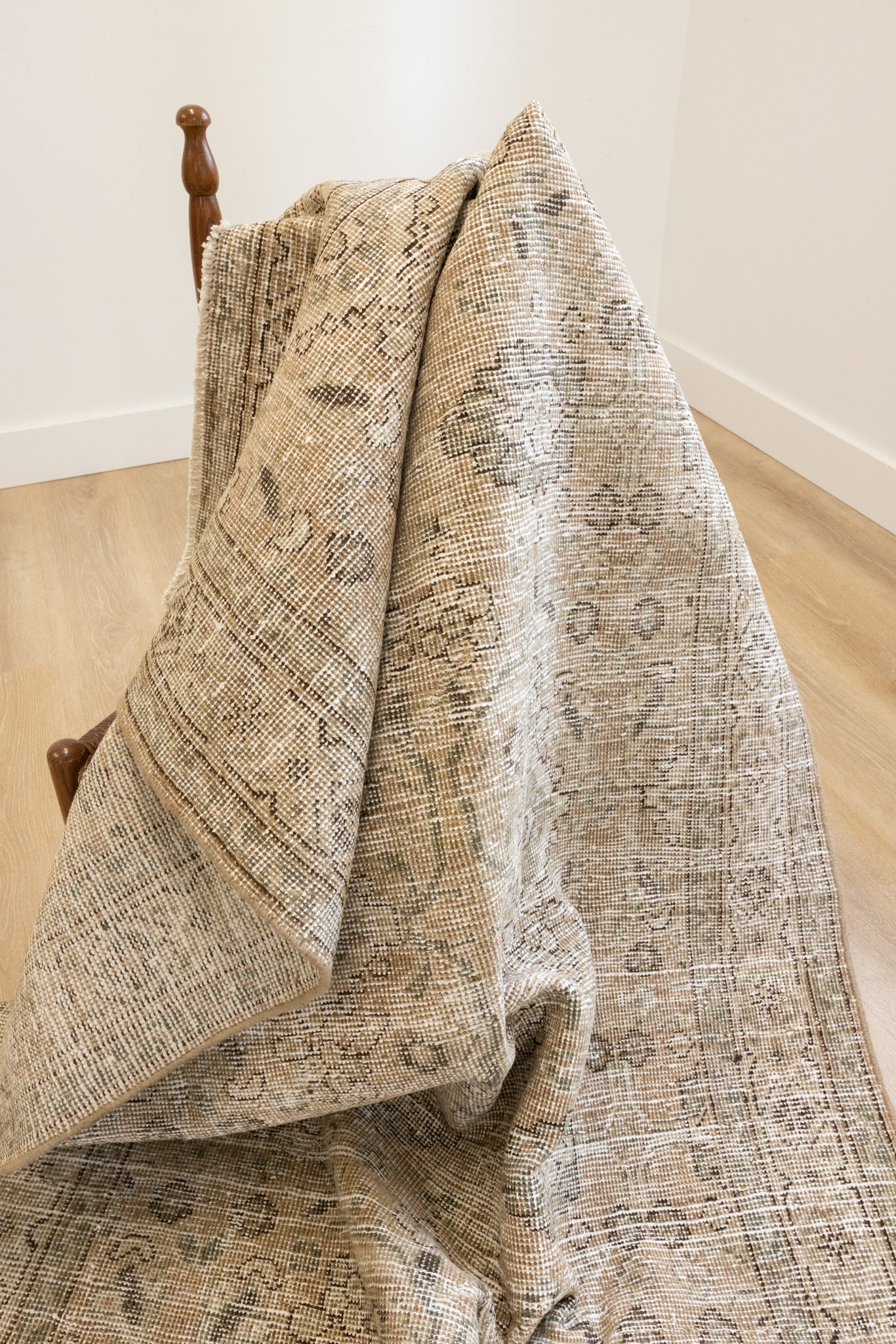 This rug has been professionally cleaned. Spot clean using the blotting technique, using a damp cloth. Take to a professional cleaner if the rug requires a deeper clean.