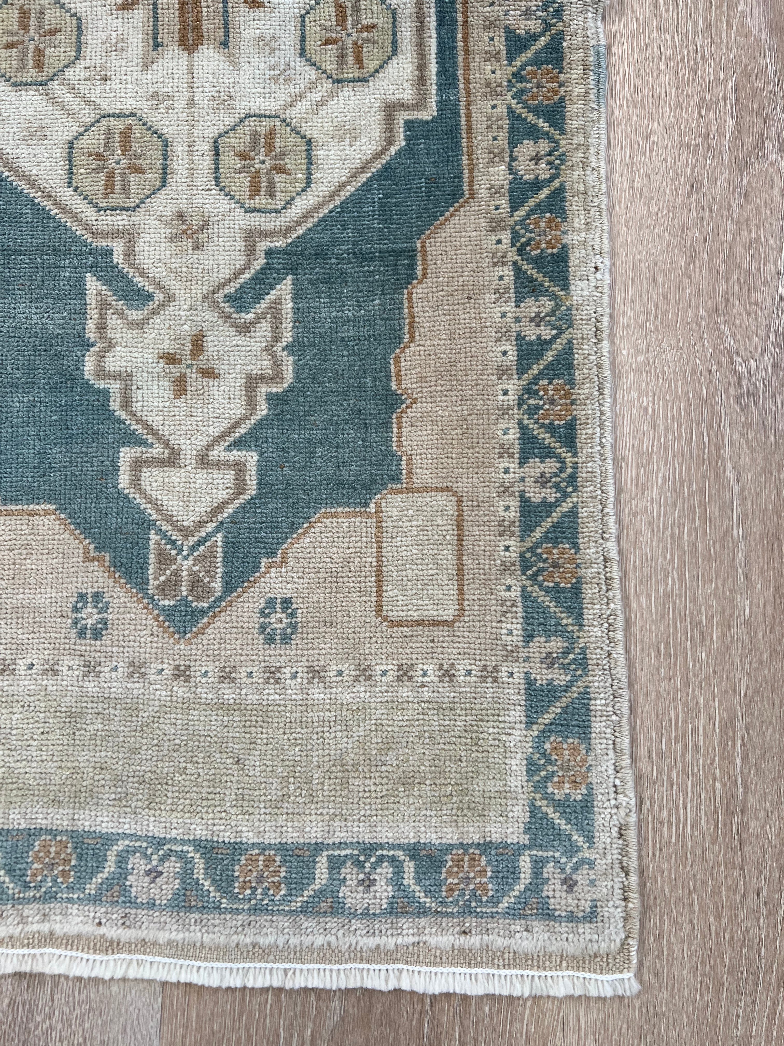This rug has been professionally cleaned. Spot clean using the blotting technique, using a damp cloth. Take to a professional cleaner if the rug requires a deeper clean.