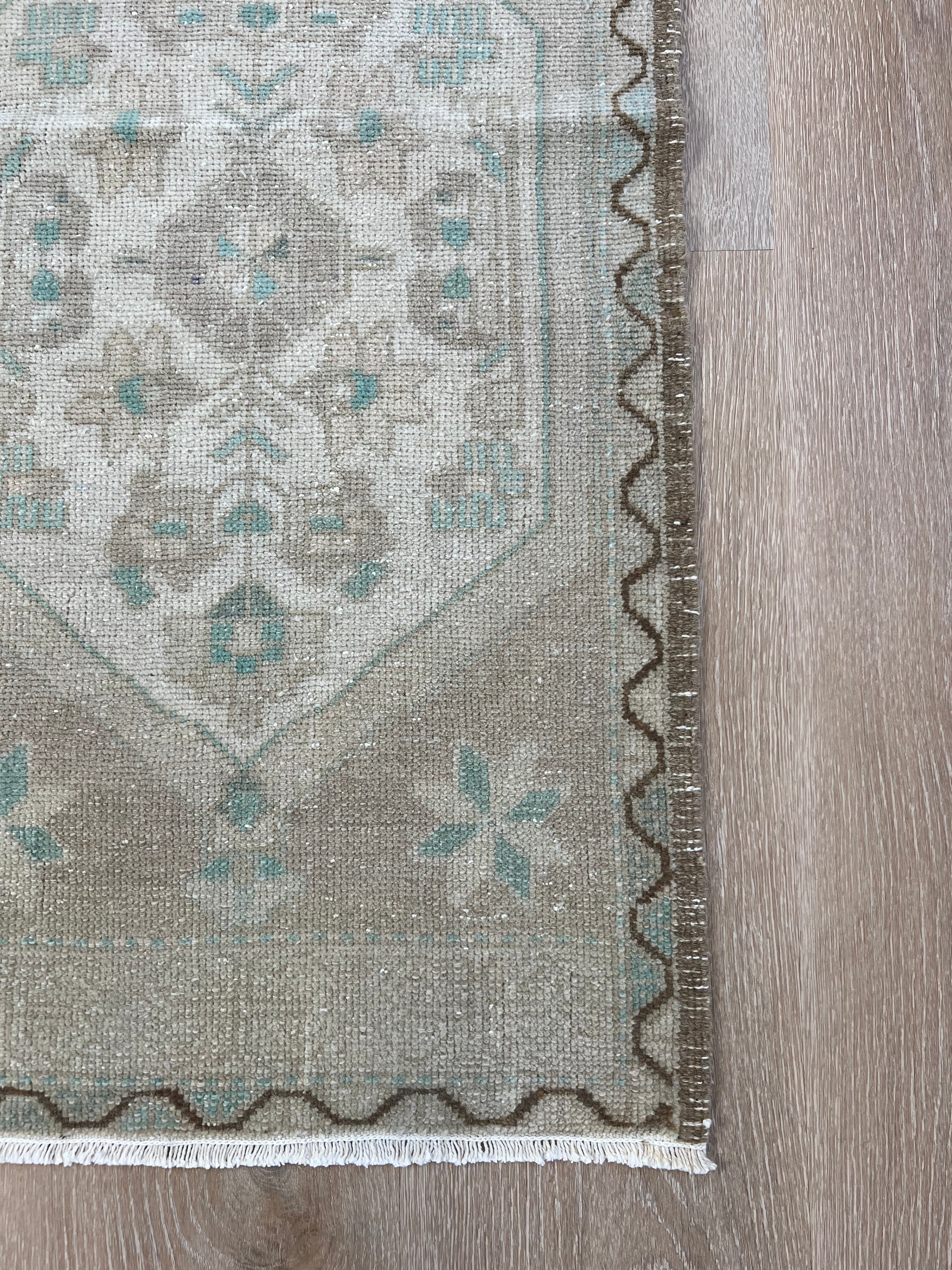 This rug has been professionally cleaned. Spot clean using the blotting technique, using a damp cloth. Take to a professional cleaner if the rug requires a deeper clean.