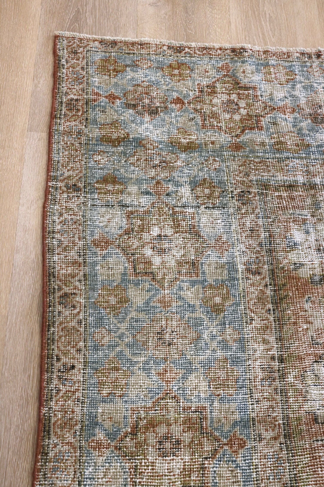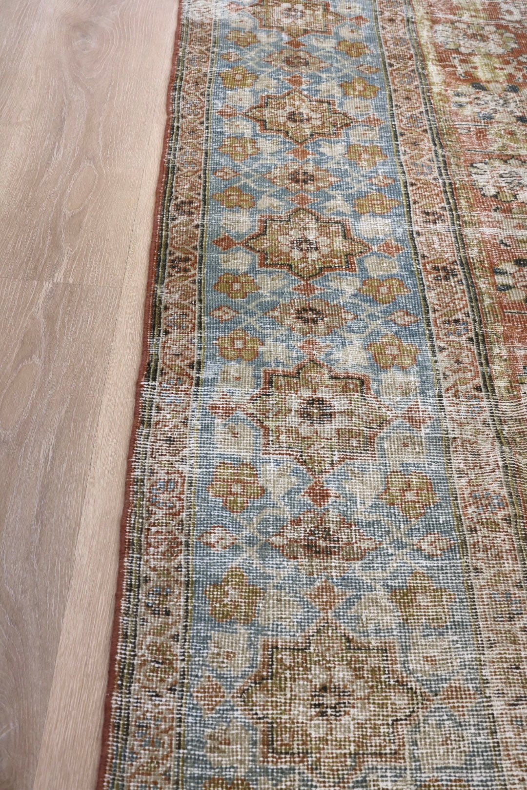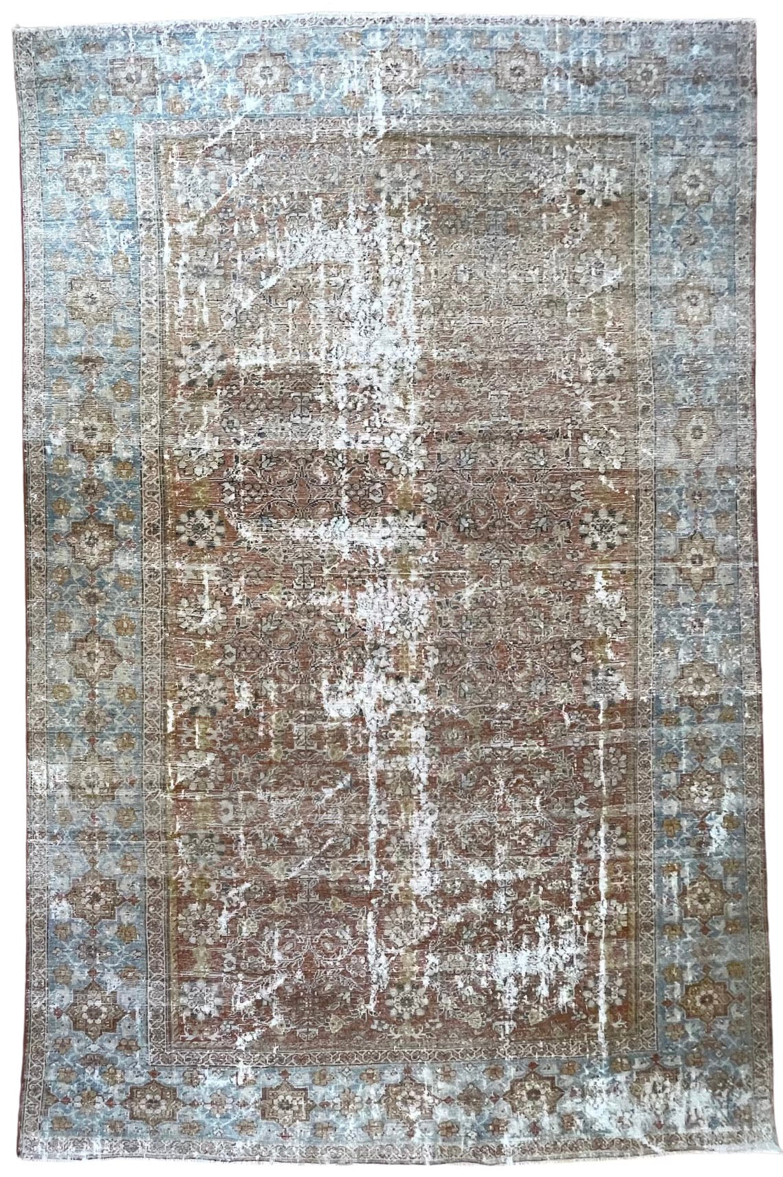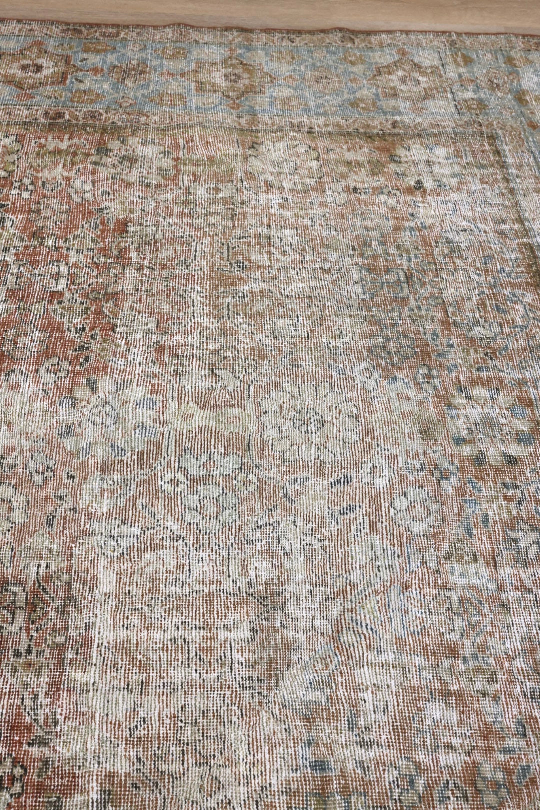 Please note that because this is a vintage rug, there may be slight imperfections in its wear, dimensions, and color. Our rugs have been repaired over the years, using various techniques. There might be evidence of these repairs through texture, look and feel. This is all part of the rich history and story of each artistic piece. These markings are not considered defective.