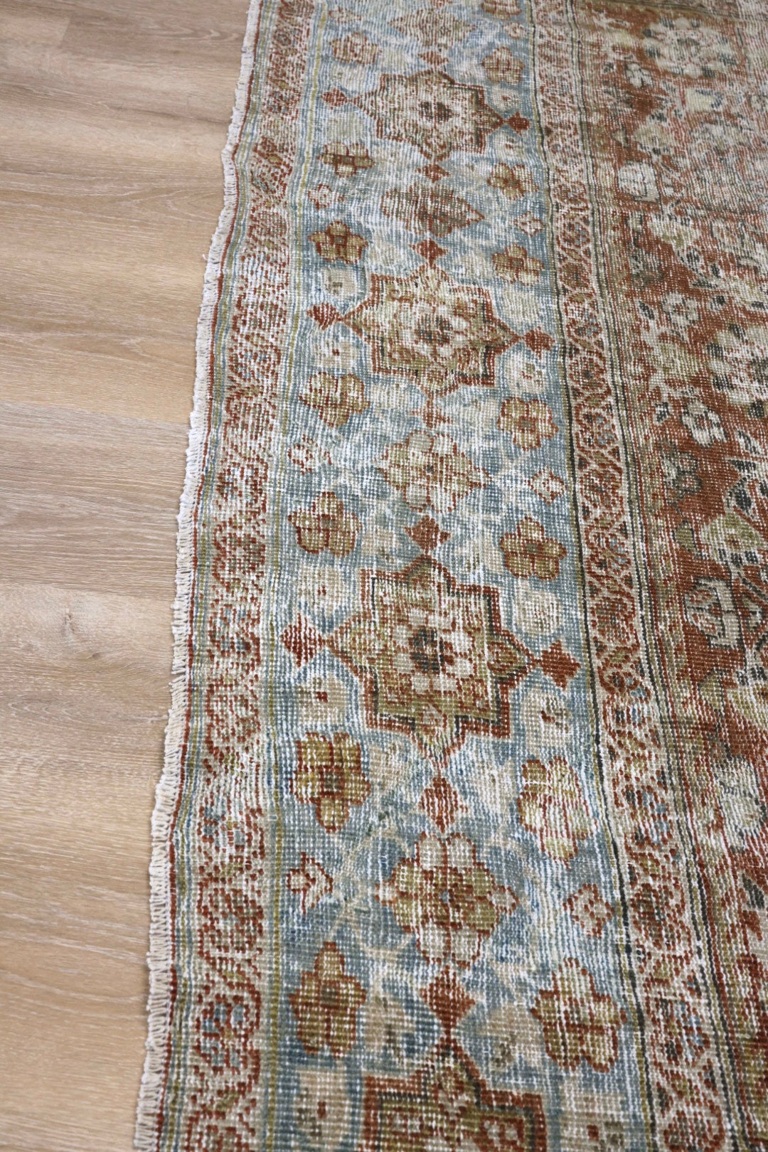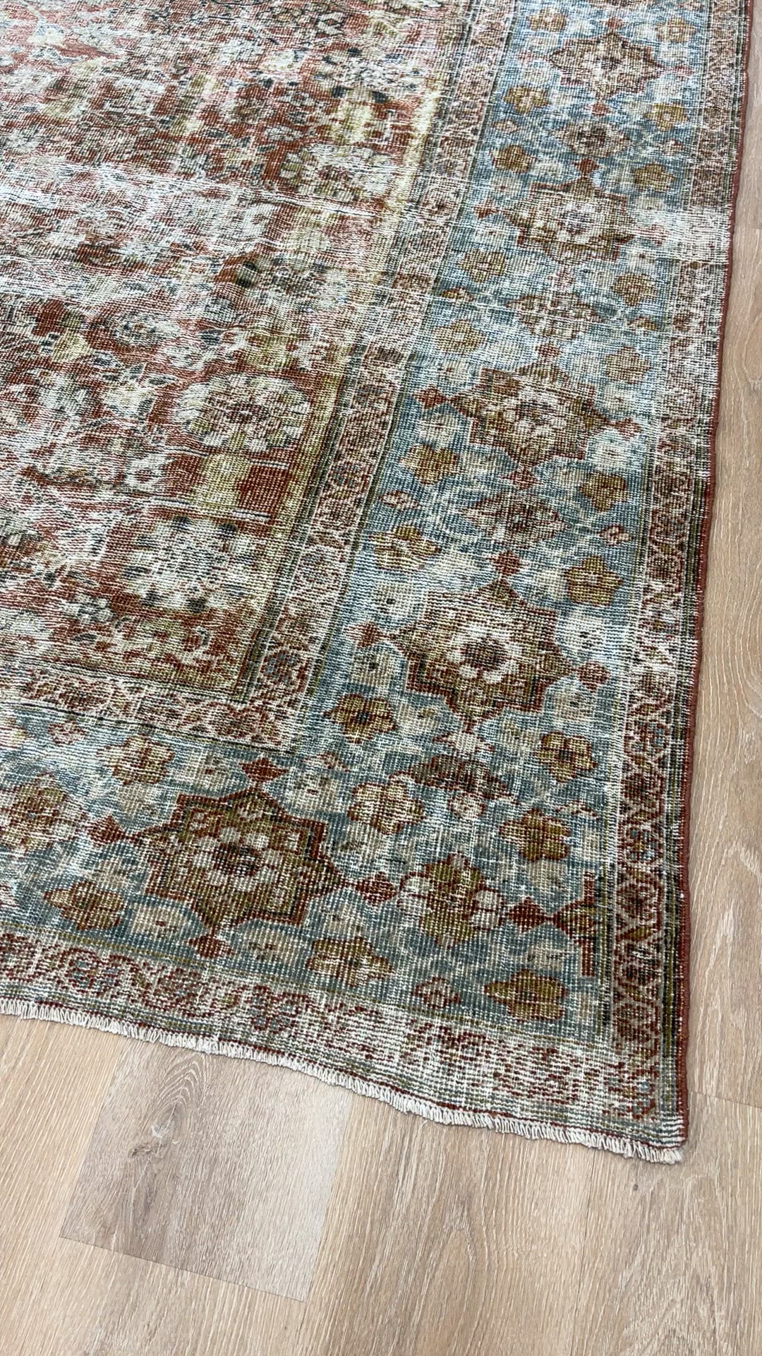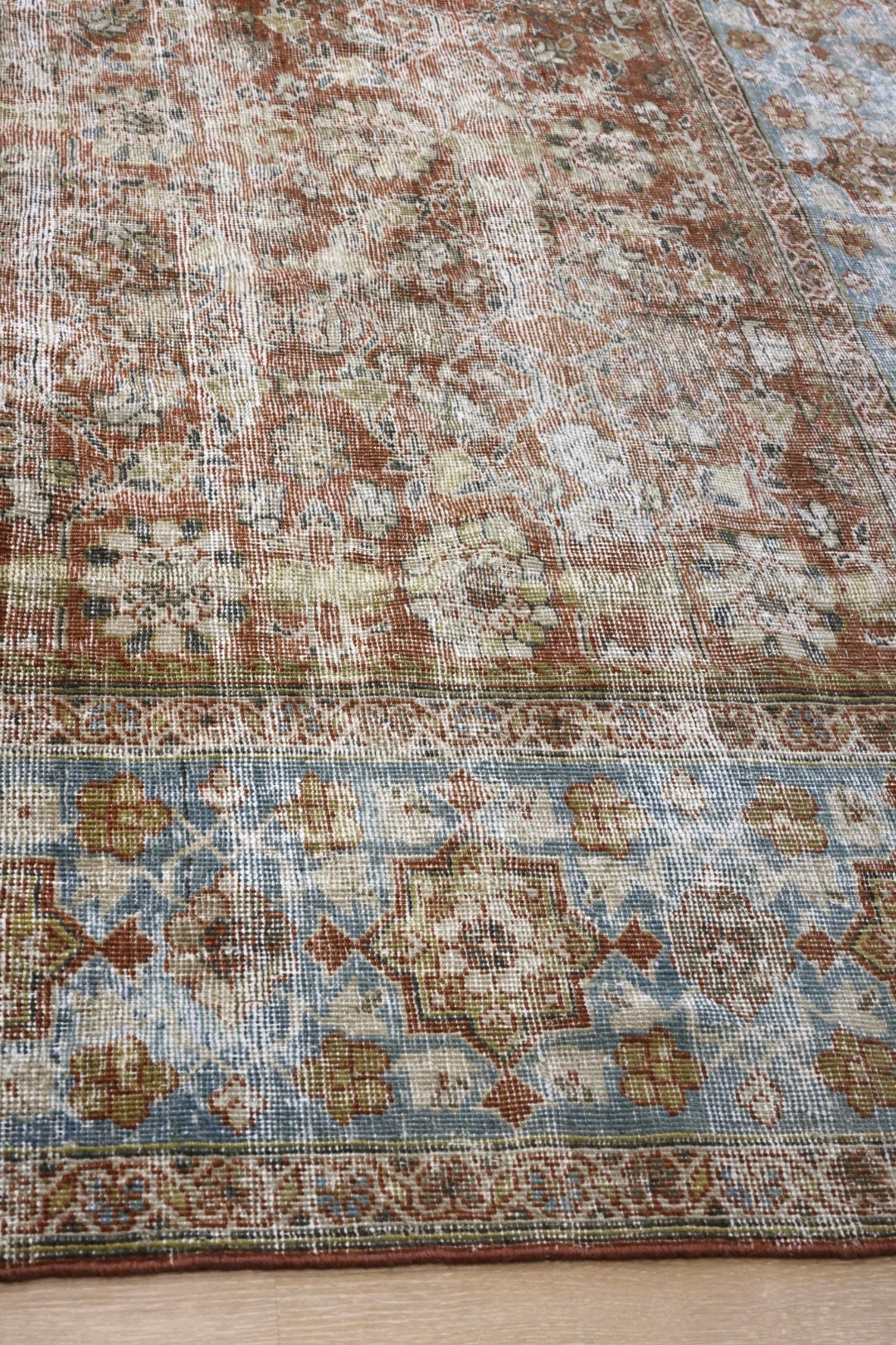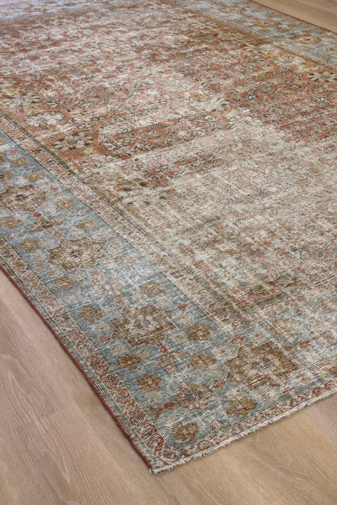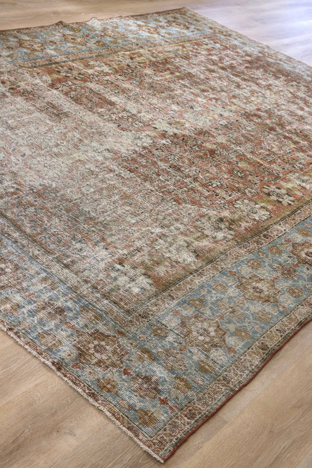 Please note that because this is a vintage rug, there may be slight imperfections in its wear, dimensions, and color. Our rugs have been repaired over the years, using various techniques. There might be evidence of these repairs through texture, look and feel. This is all part of the rich history and story of each artistic piece. These markings are not considered defective.