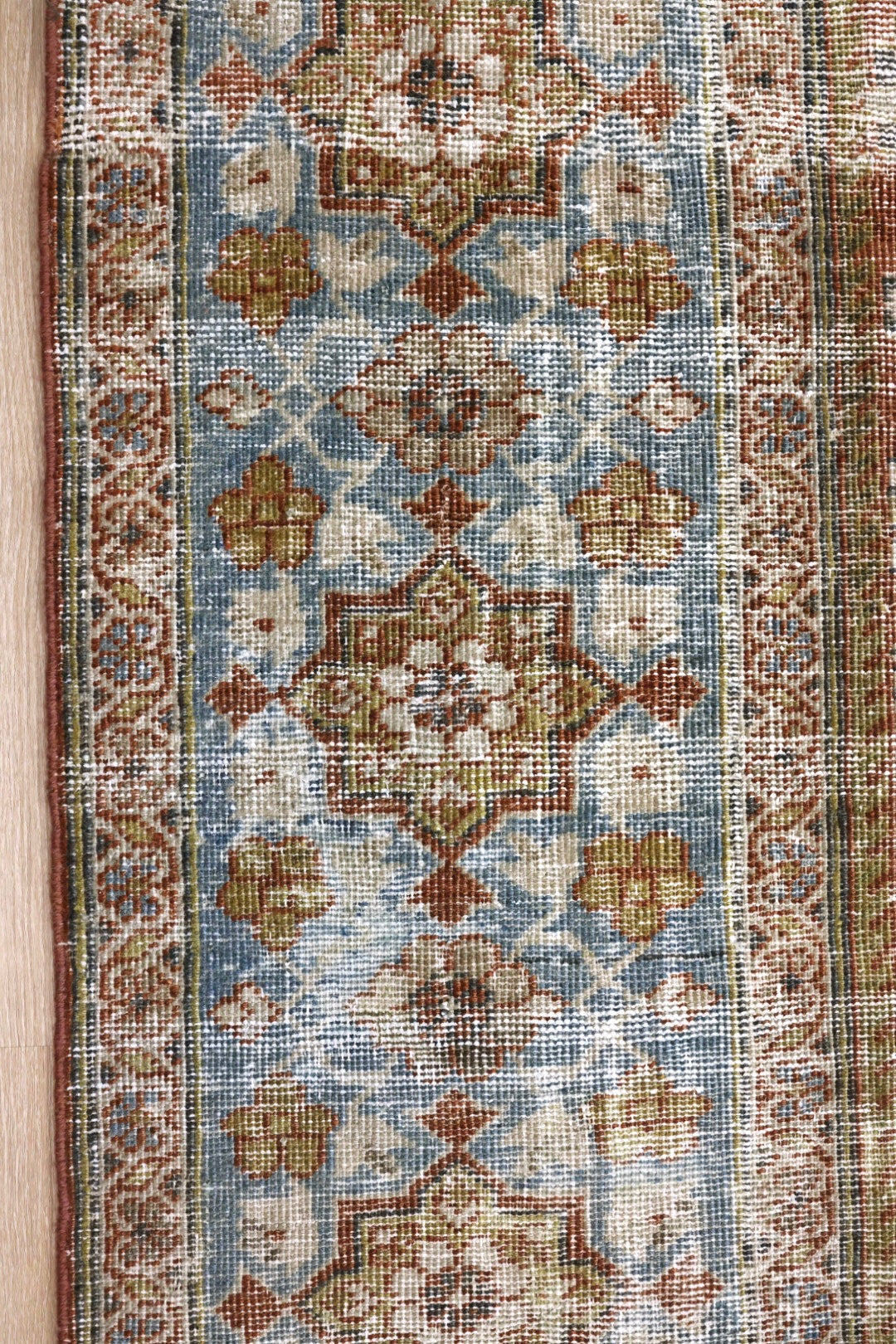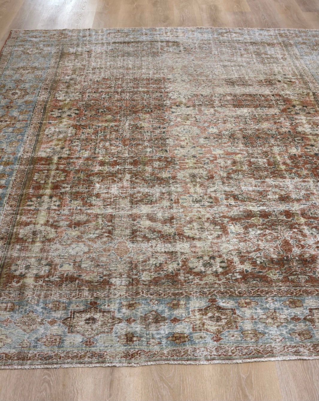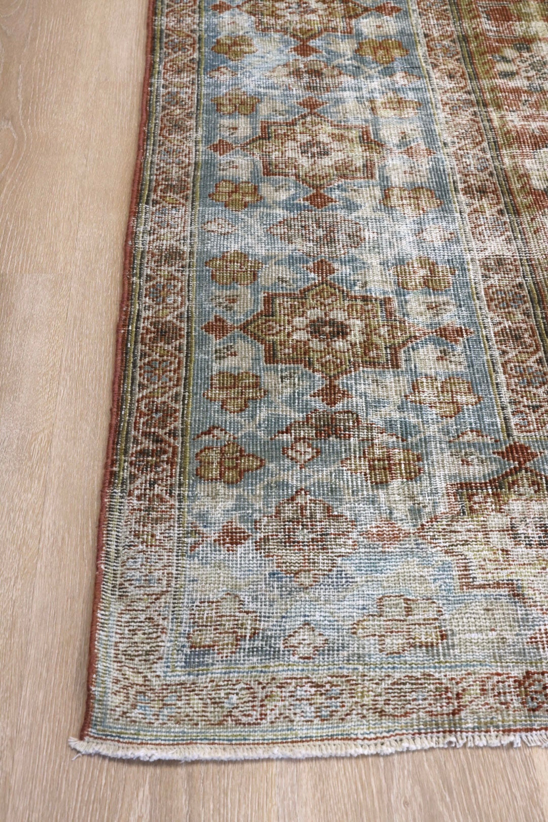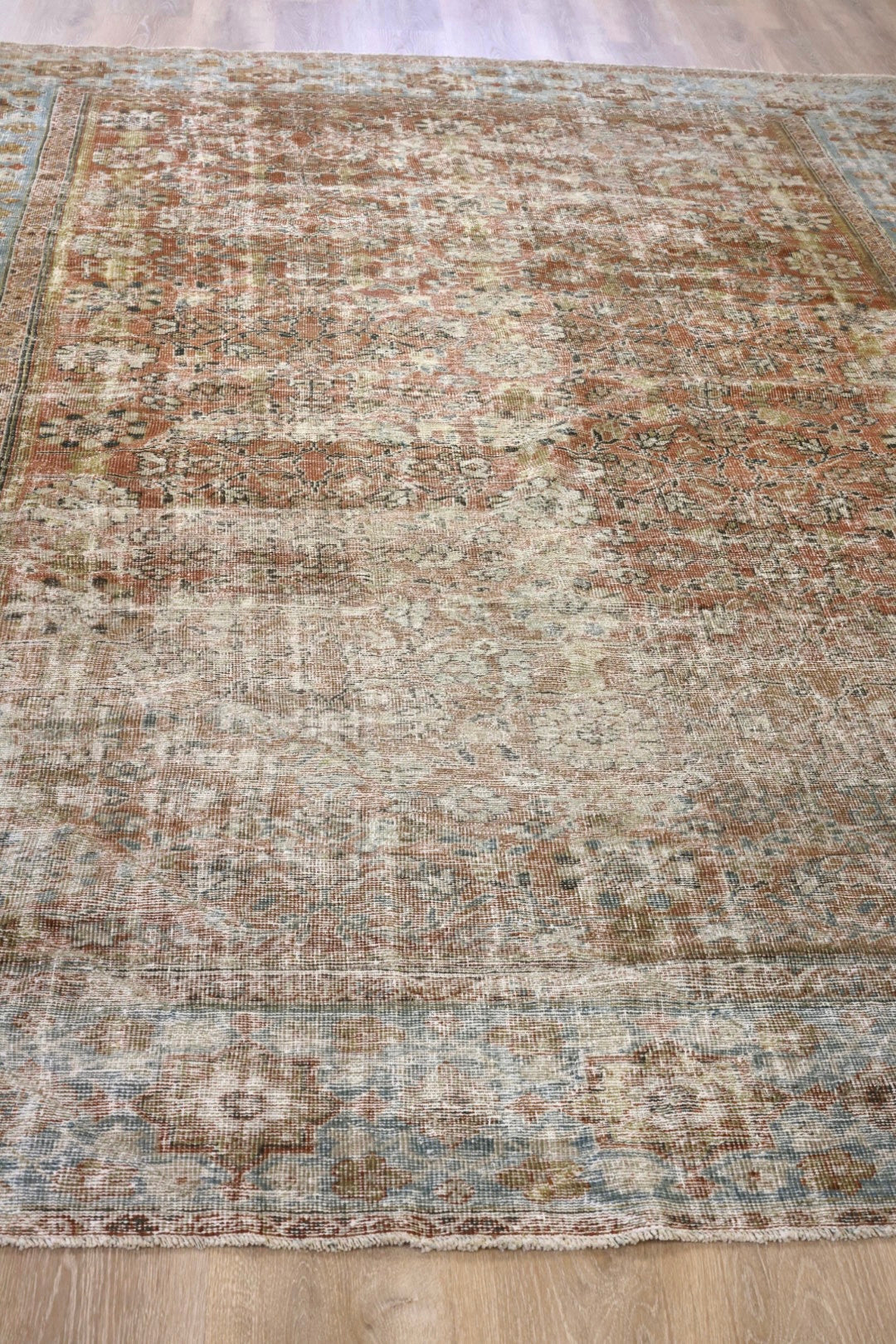 Please note that because this is a vintage rug, there may be slight imperfections in its wear, dimensions, and color. Our rugs have been repaired over the years, using various techniques. There might be evidence of these repairs through texture, look and feel. This is all part of the rich history and story of each artistic piece. These markings are not considered defective.