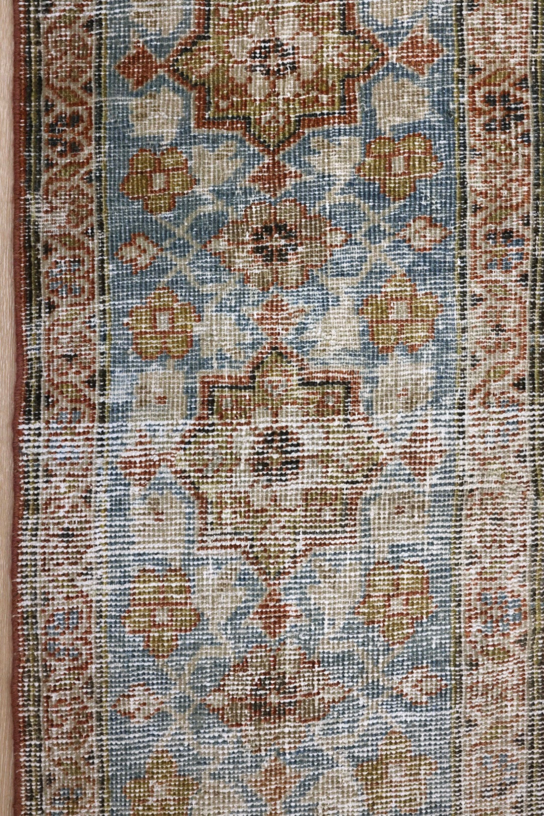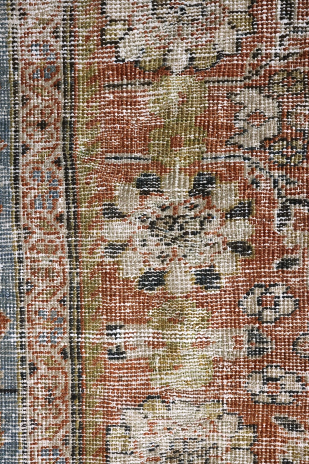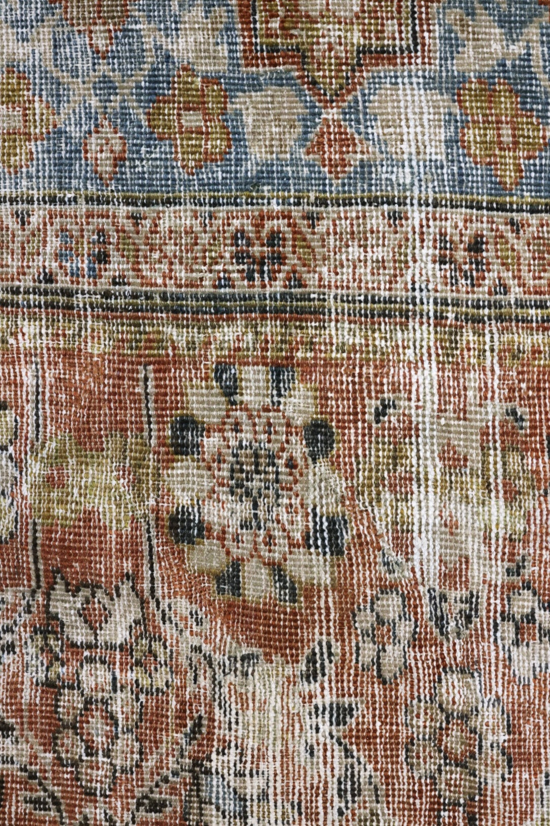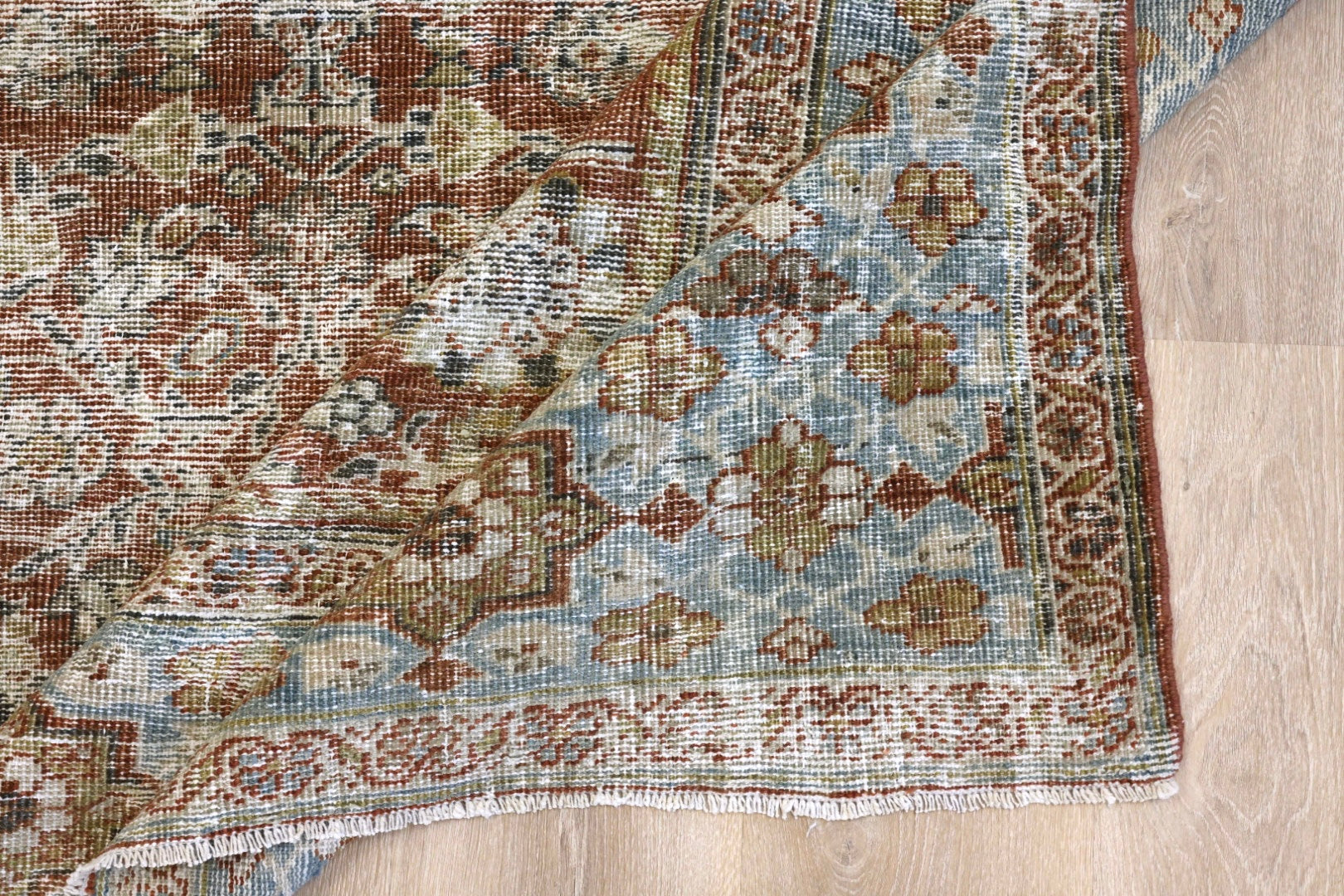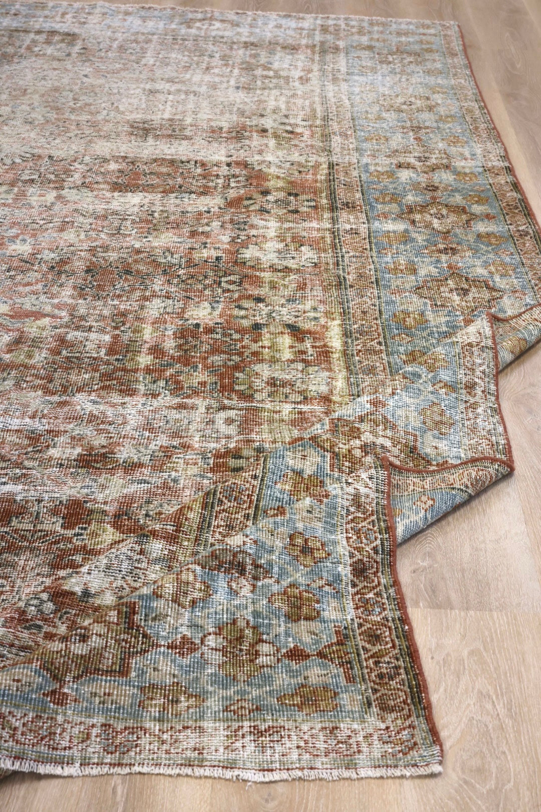 Please note that because this is a vintage rug, there may be slight imperfections in its wear, dimensions, and color. Our rugs have been repaired over the years, using various techniques. There might be evidence of these repairs through texture, look and feel. This is all part of the rich history and story of each artistic piece. These markings are not considered defective.