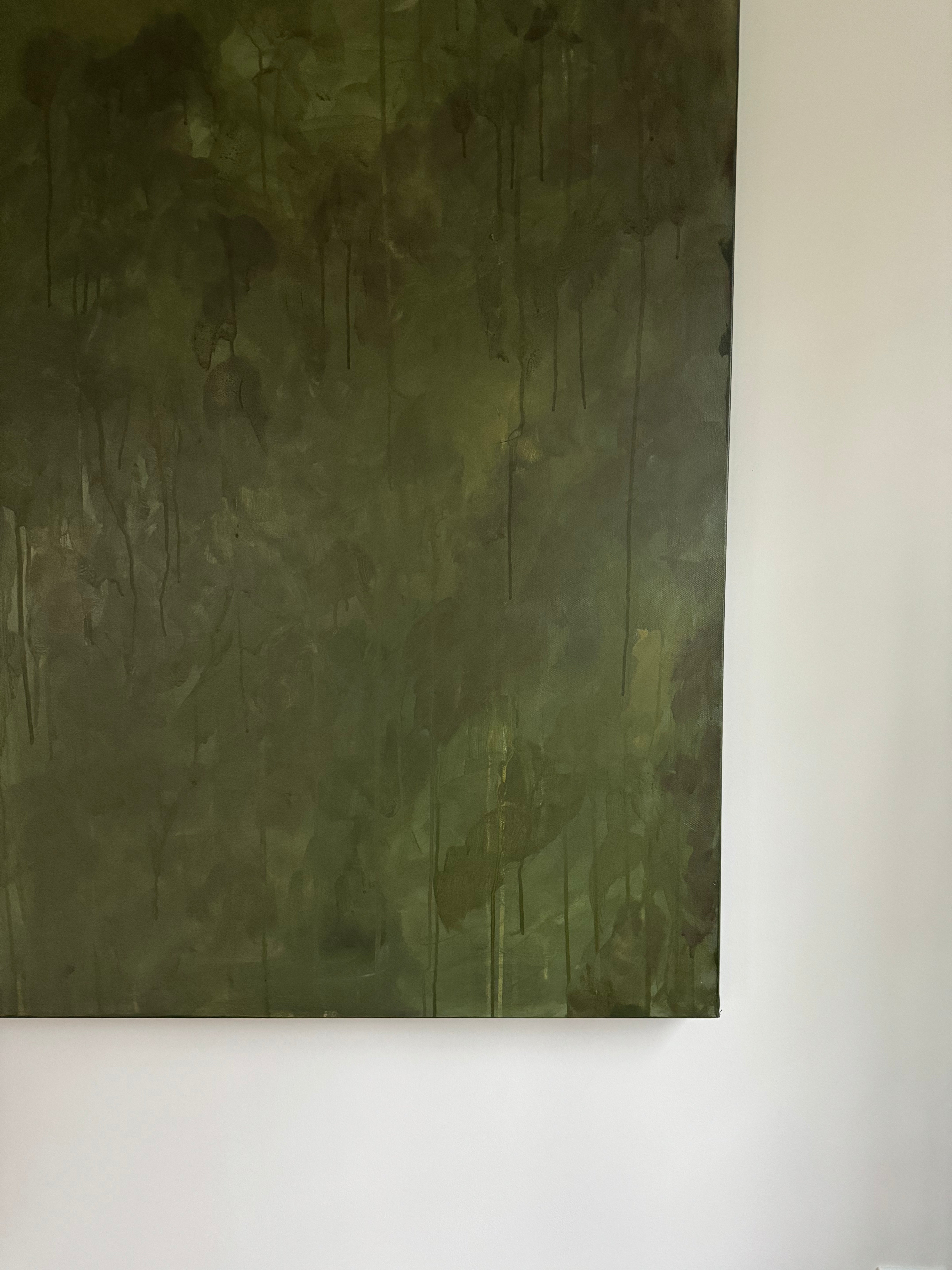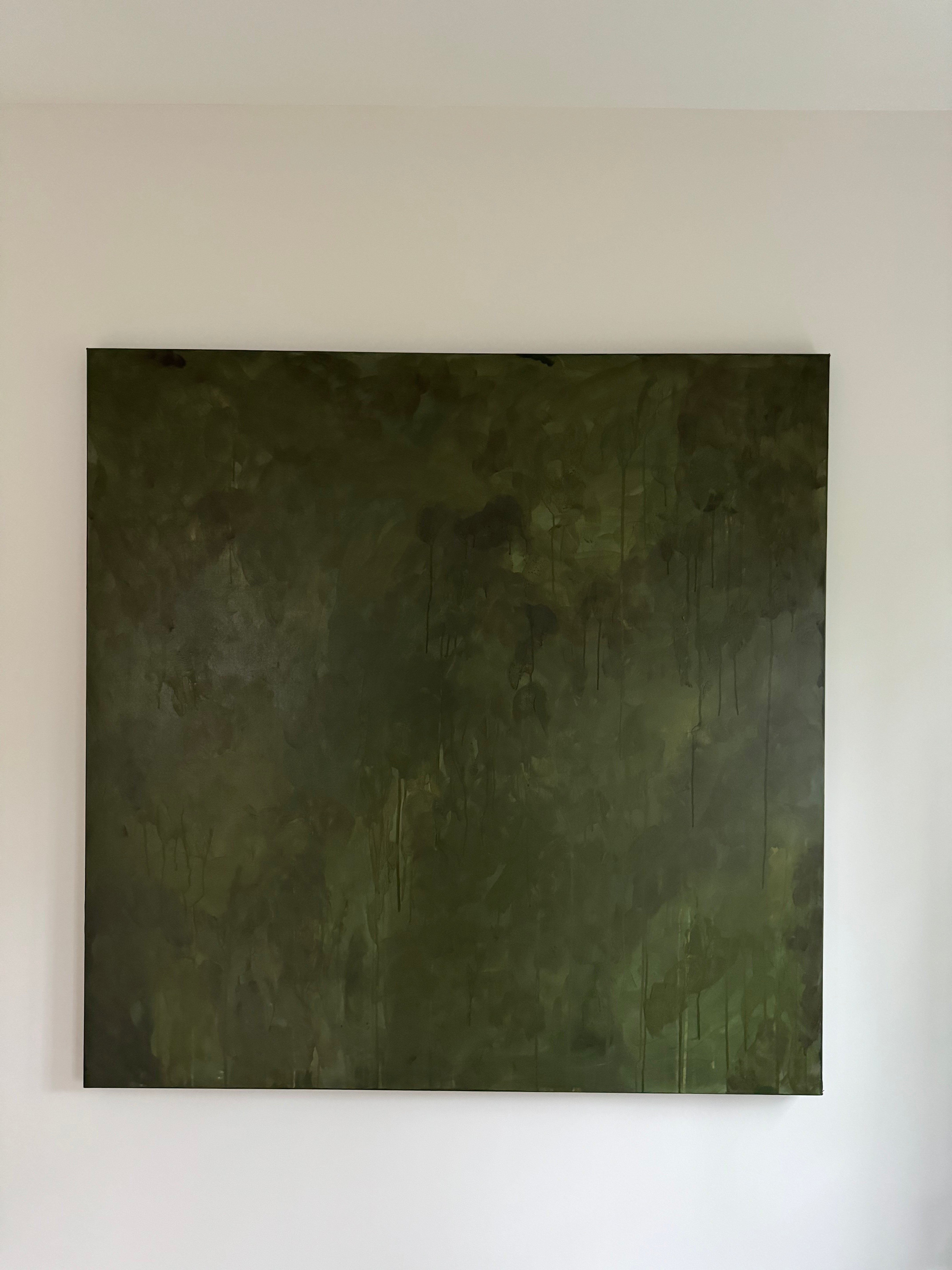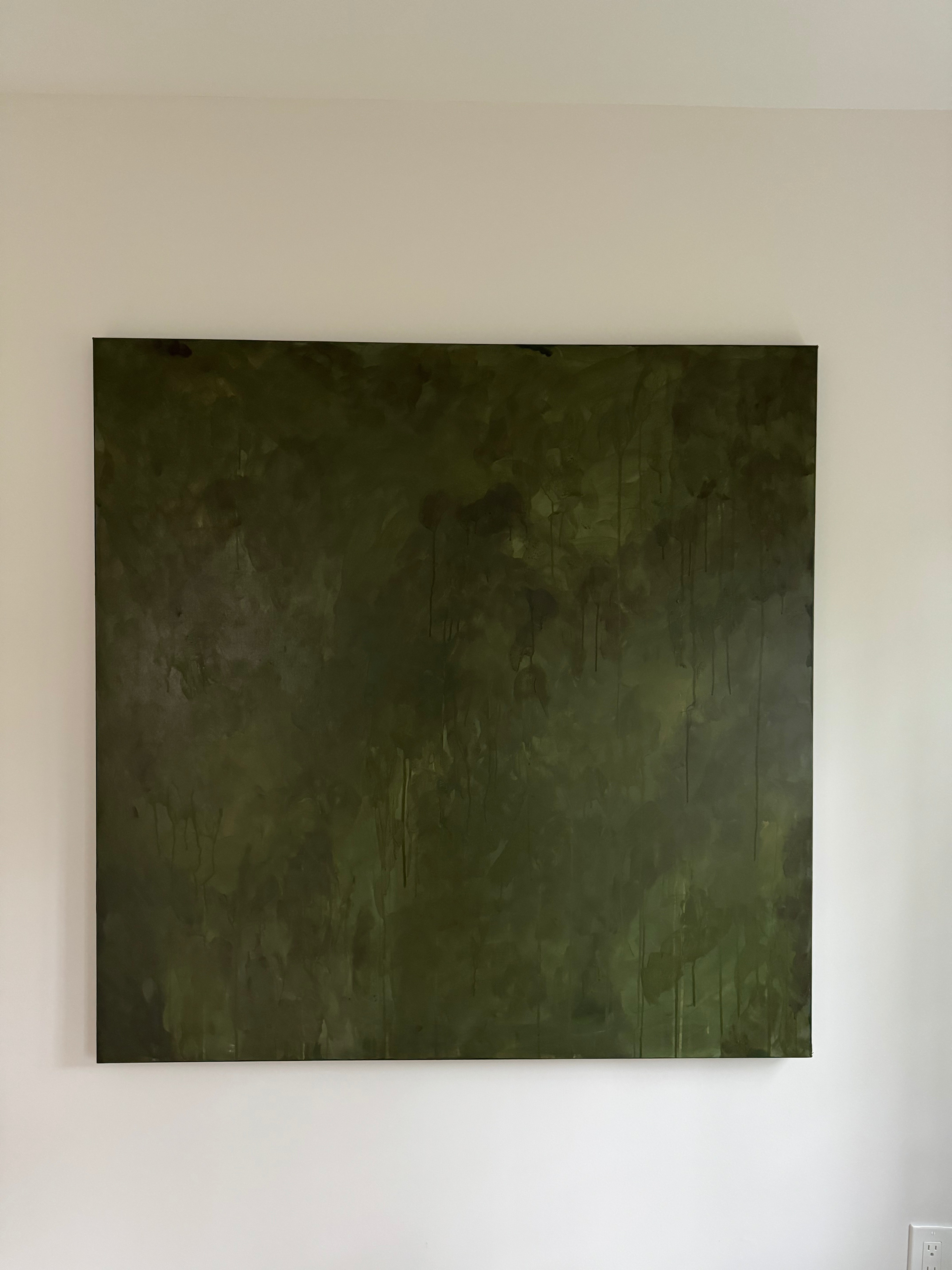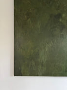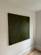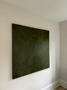 "Midnight Evergreen" is an evocative and captivating abstract painting featuring a monochromatic palette of dark green tones. The moody atmosphere of the piece draws the viewer into a world of mystery and depth. The intersecting layers in the artwork invite contemplation and discovery, offering a unique and entrancing visual experience.