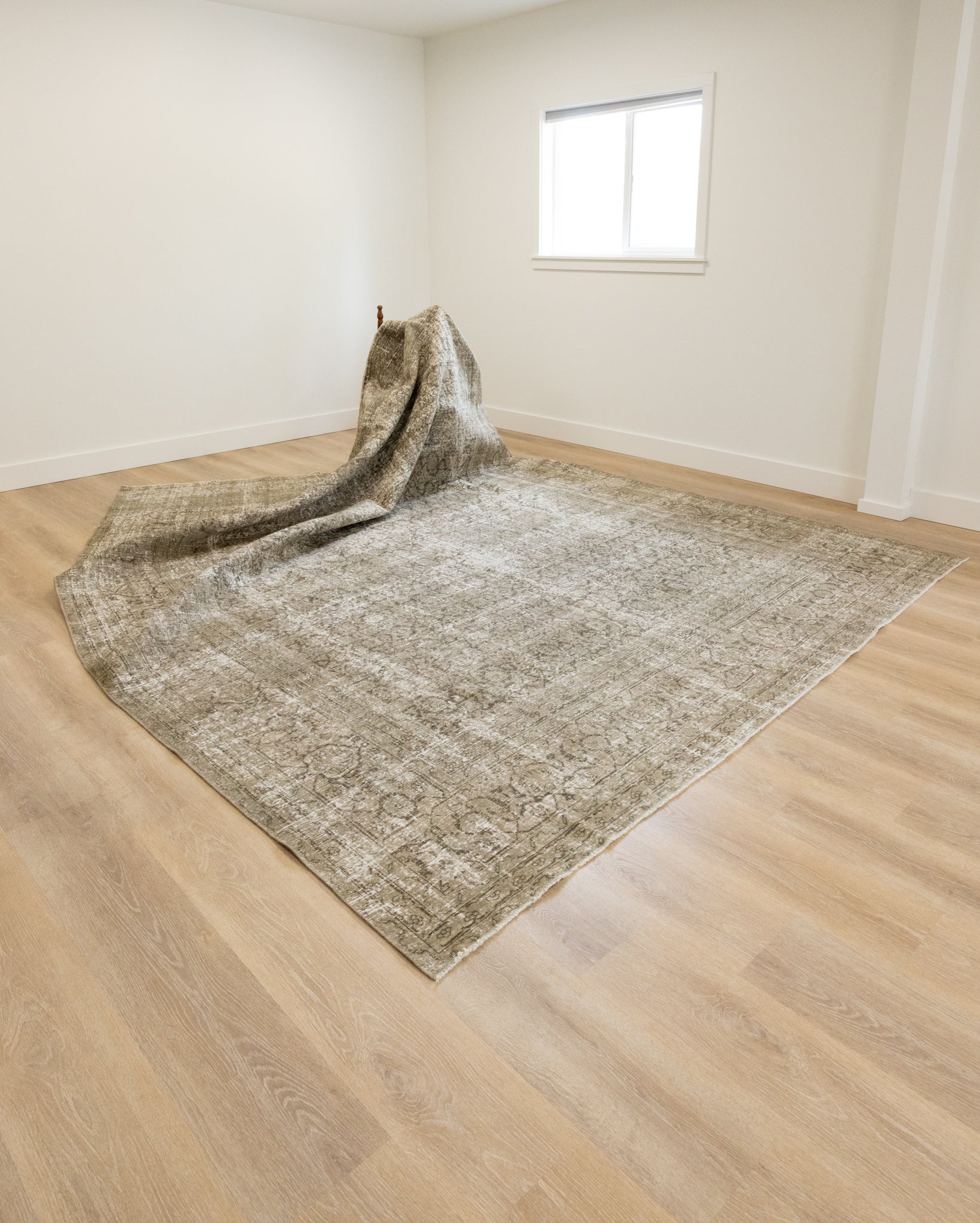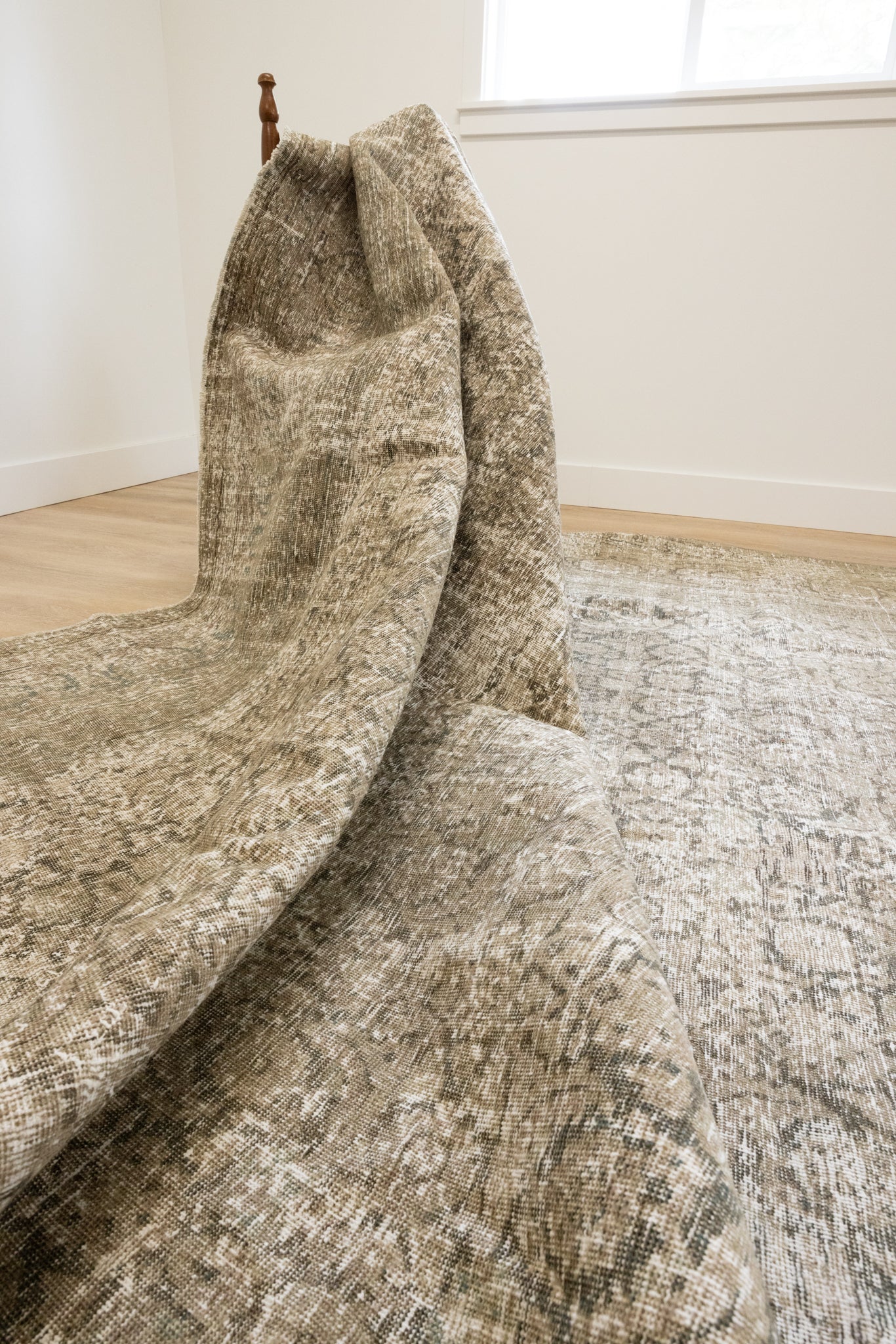 This rug has been professionally cleaned. Spot clean using the blotting technique, using a damp cloth. Take to a professional cleaner if the rug requires a deeper clean.