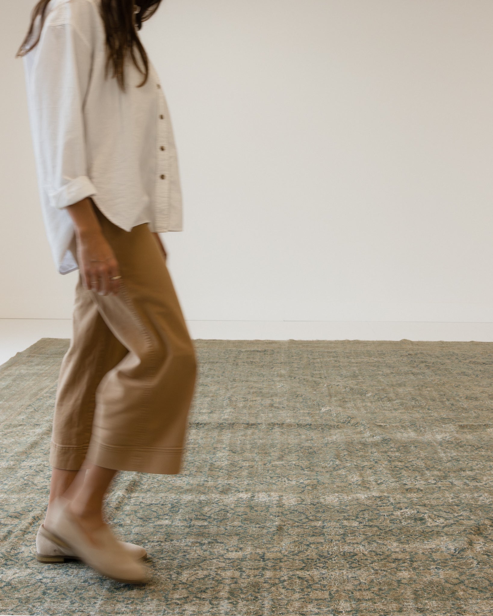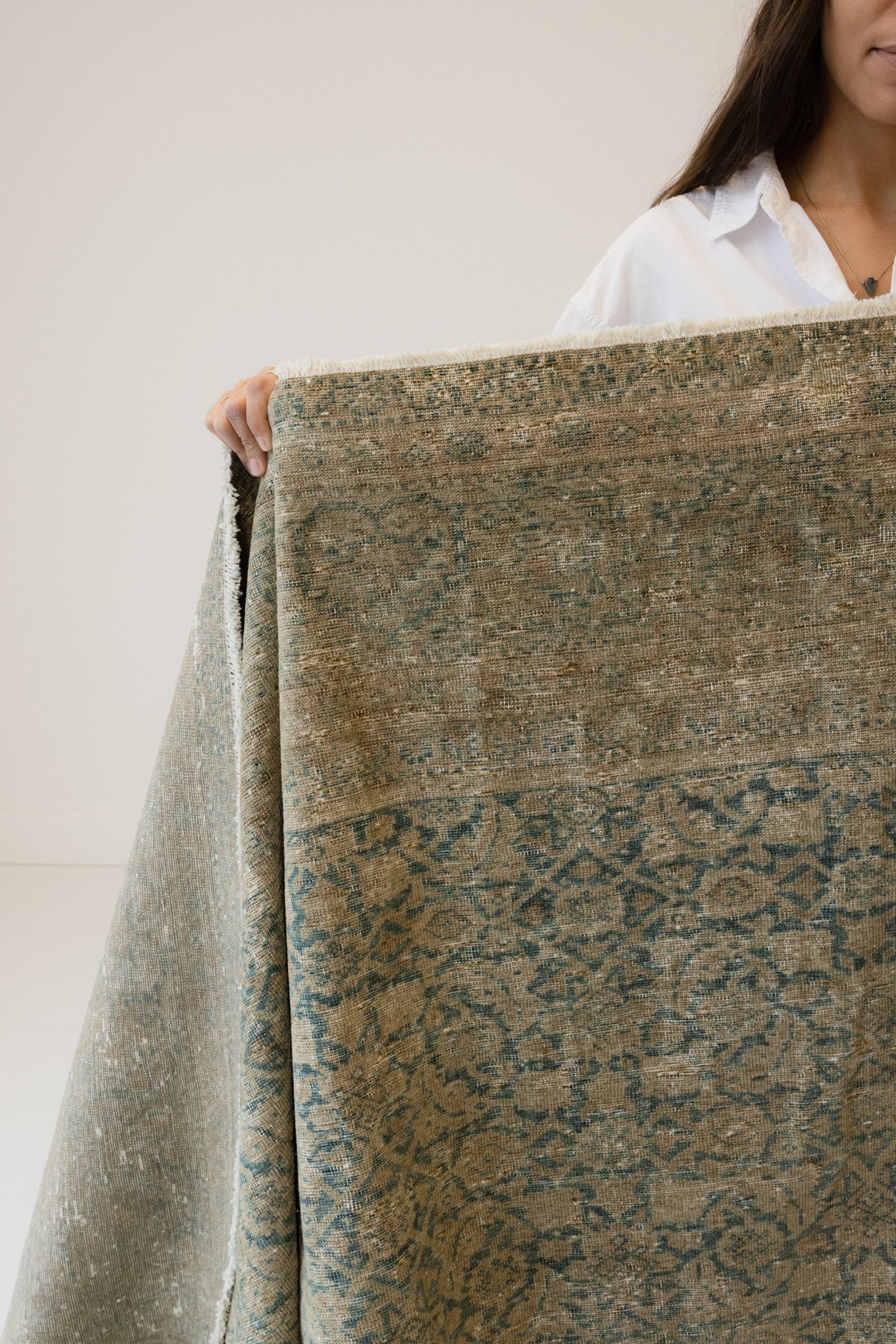 Because of the nature of this item, there may be slight imperfections in its wear, shape, dimensions, and color. Our rugs have been repaired over the years, using various techniques. There might be evidence of these repairs through texture, look and feel. This is all part of the rich history and story of each artistic piece. These markings are not considered defective.