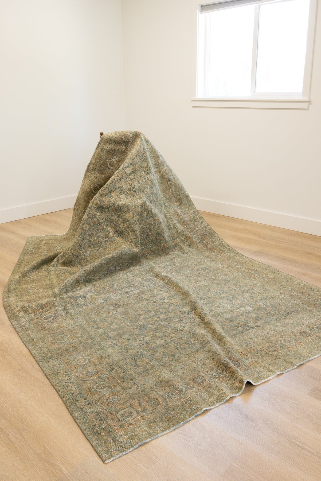 Because of the nature of this item, there may be slight imperfections in its wear, shape, dimensions, and color. Our rugs have been repaired over the years, using various techniques. There might be evidence of these repairs through texture, look and feel. This is all part of the rich history and story of each artistic piece. These markings are not considered defective.