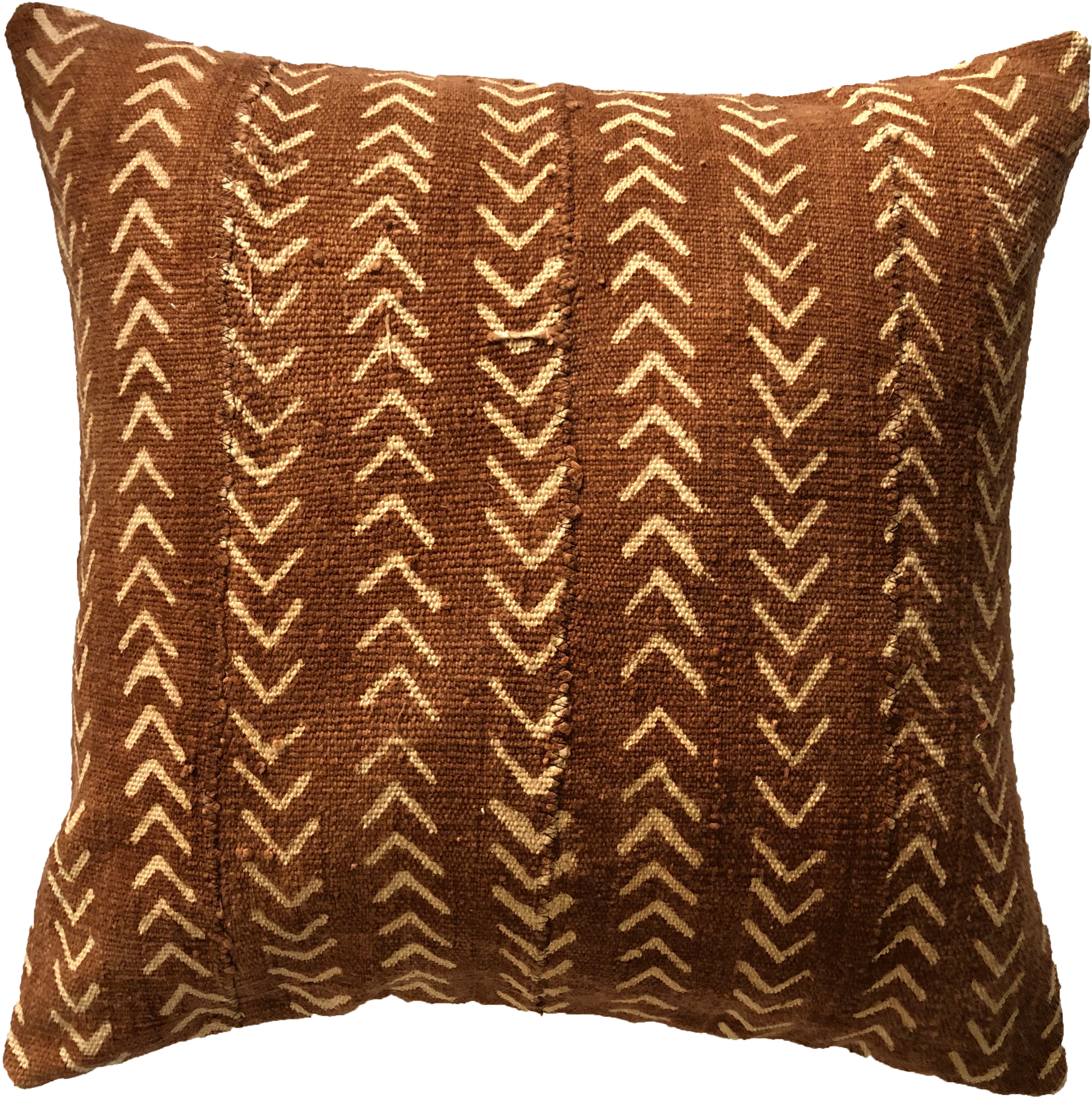 This thick, rough material is hand-dyed by artisans in Mali, Africa. It is made from hand-woven cotton and dyed with leaves, branches, and river mud. No two Mudcloth pillows are the same. Each piece is hand-stitched from narrow strips of the fabric sewn together. The pattern on each pillow may vary slightly. The flaws give each pillow personality and character.