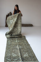 Because of the nature of this item, there may be slight imperfections in its wear, shape, dimensions, and color. Our rugs have been repaired over the years, using various techniques. There might be evidence of these repairs through texture, look and feel. This is all part of the rich history and story of each artistic piece. These markings are not considered defective.