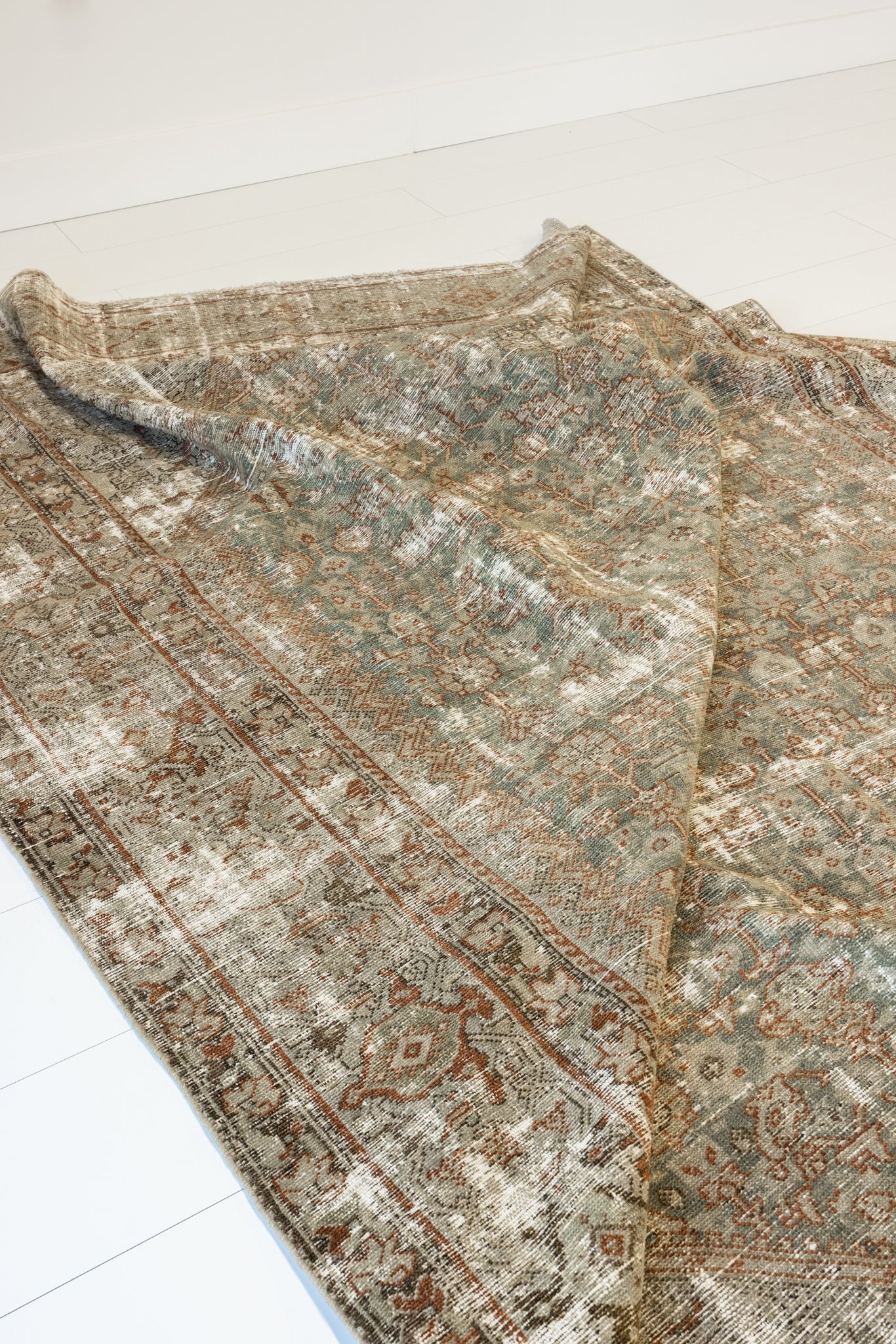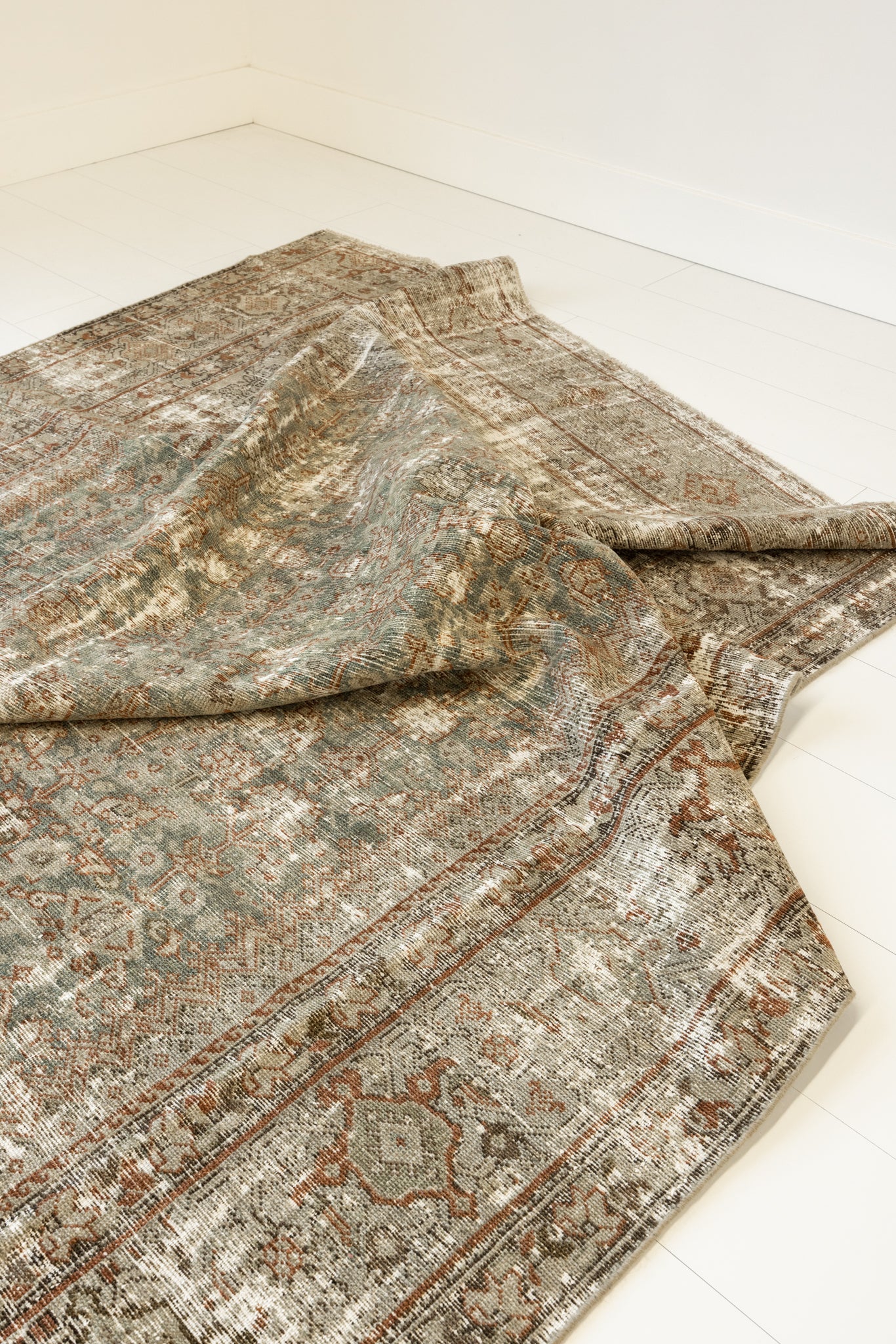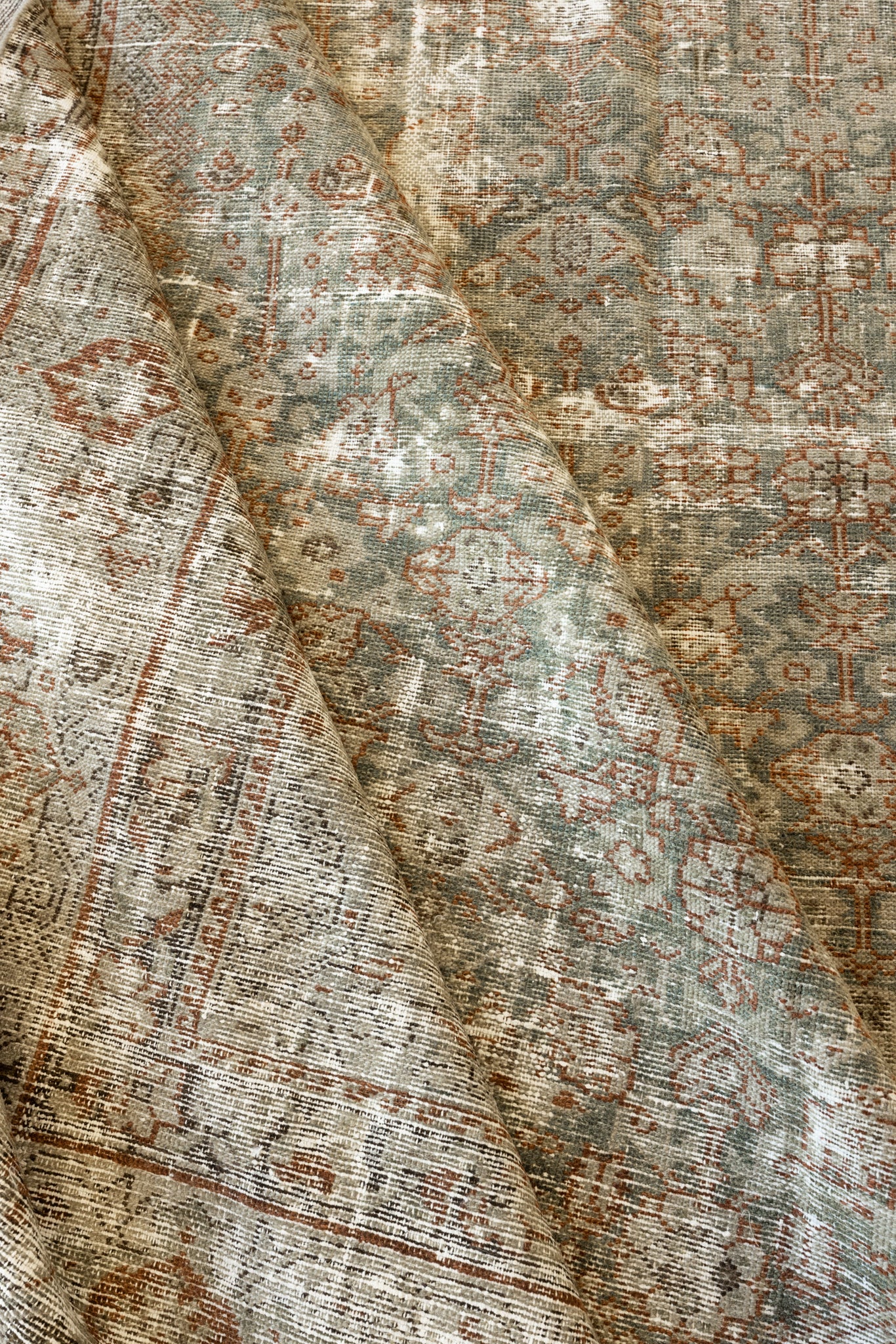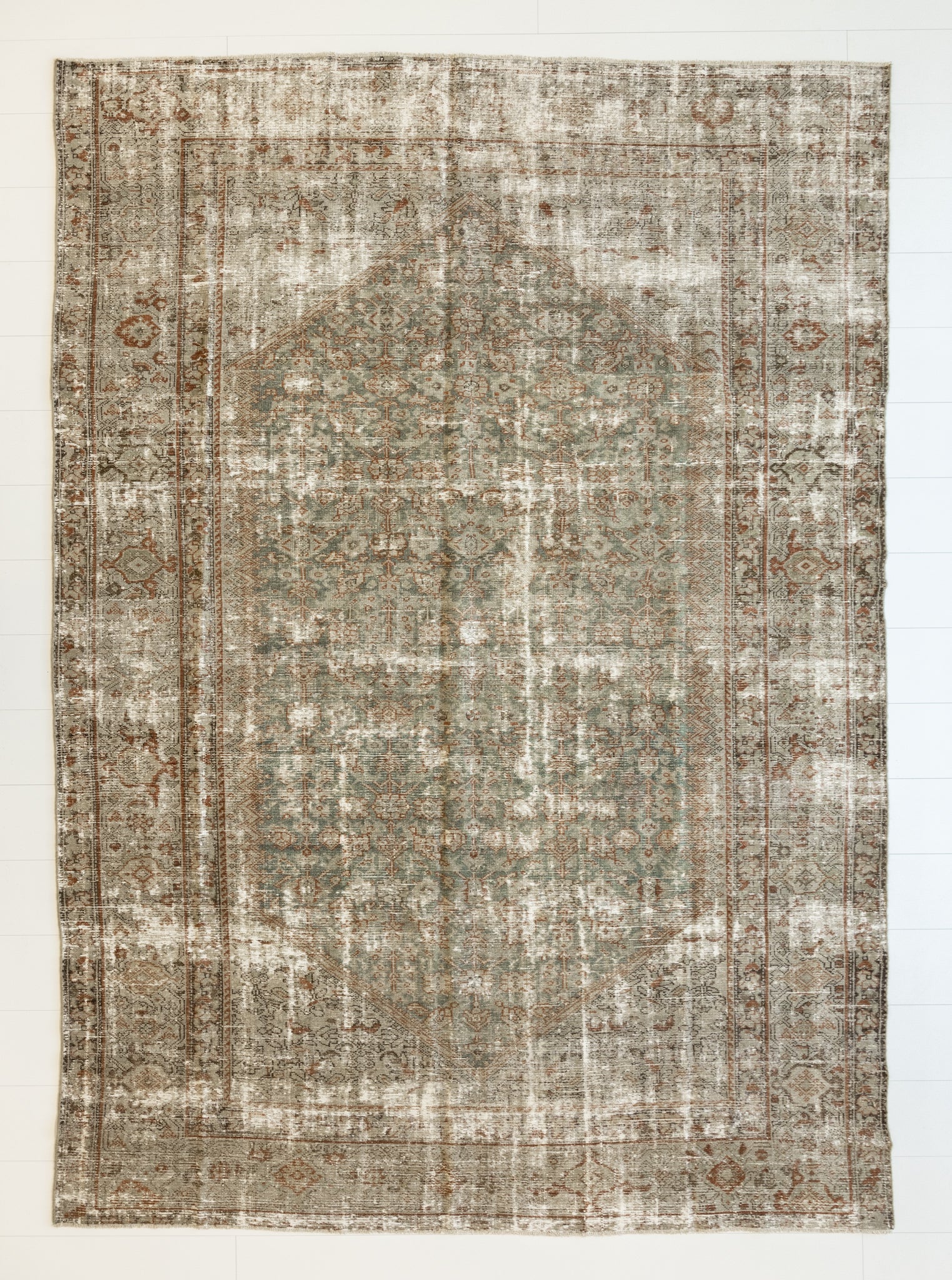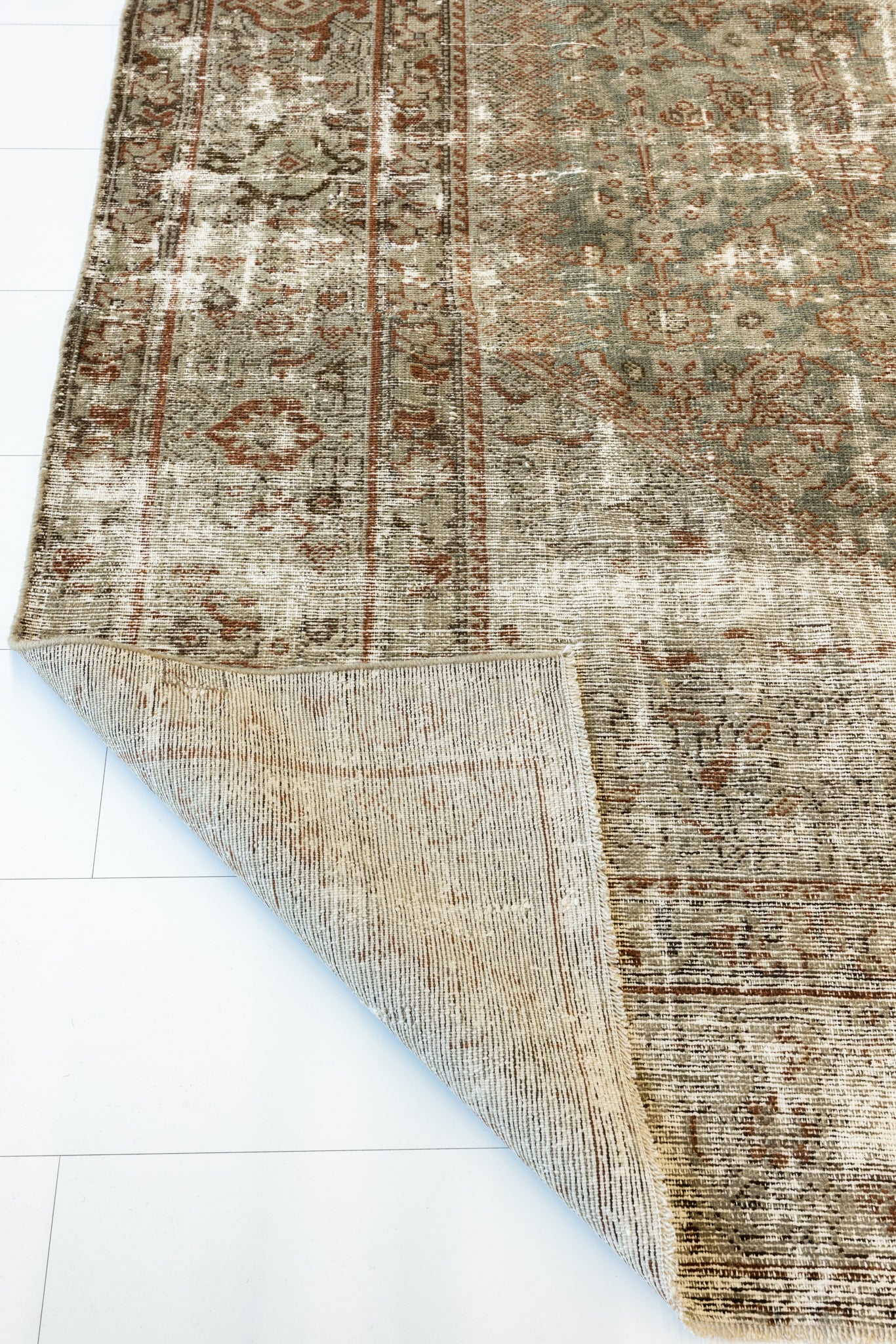 Because of the nature of this item, there may be slight imperfections in its wear, shape, dimensions, and color. Our rugs have been repaired over the years, using various techniques. There might be evidence of these repairs through texture, look and feel. This is all part of the rich history and story of each artistic piece. These markings are not considered defective.