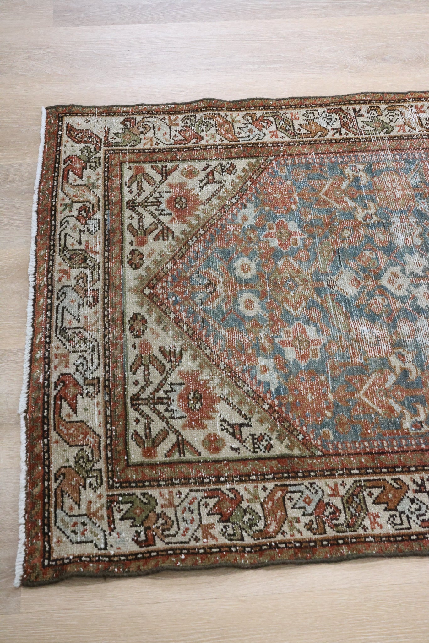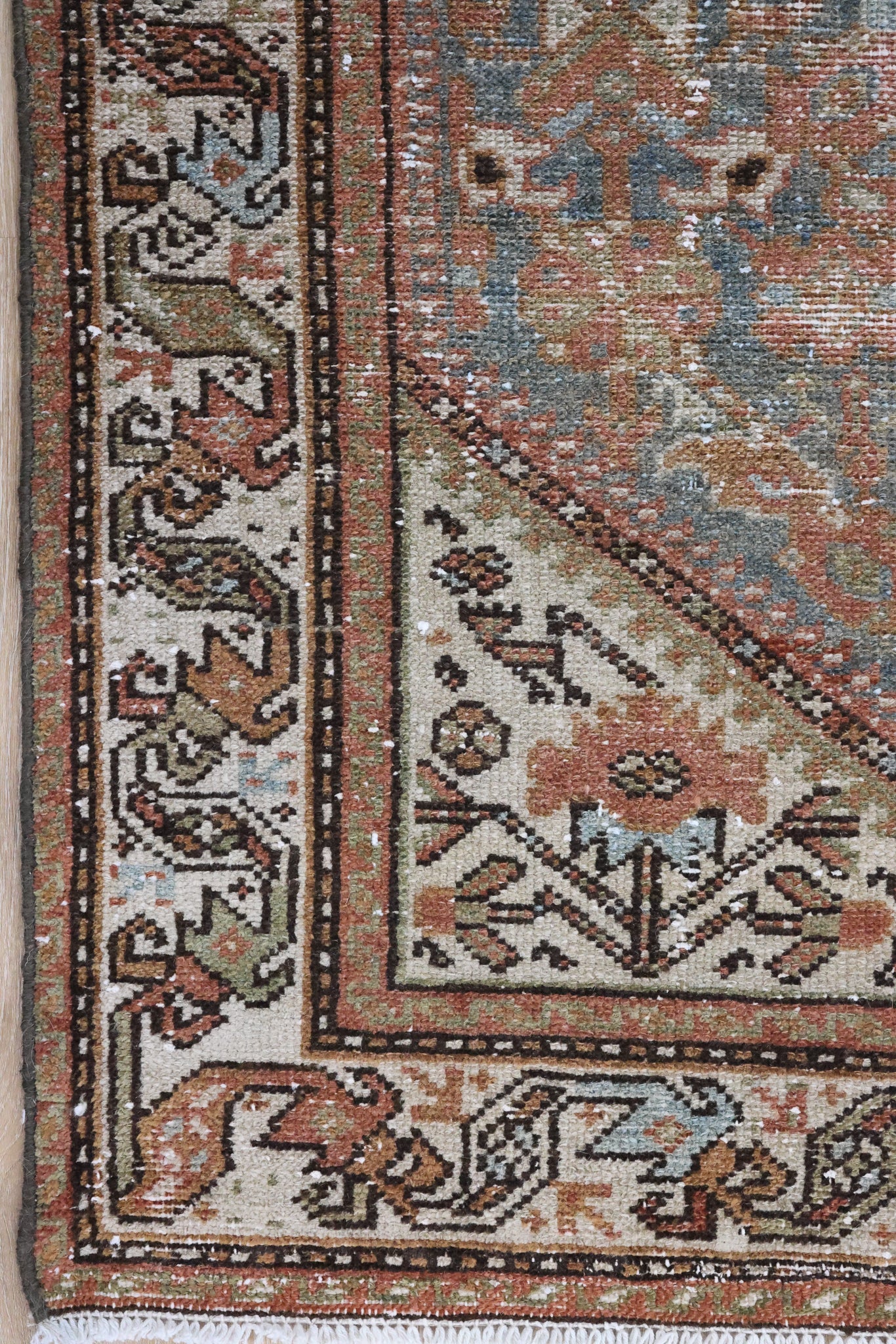 Please note that because this is a vintage rug, there may be slight imperfections in its wear, dimensions, and color. Our rugs have been repaired over the years, using various techniques. There might be evidence of these repairs through texture, look and feel. This is all part of the rich history and story of each artistic piece. These markings are not considered defective.