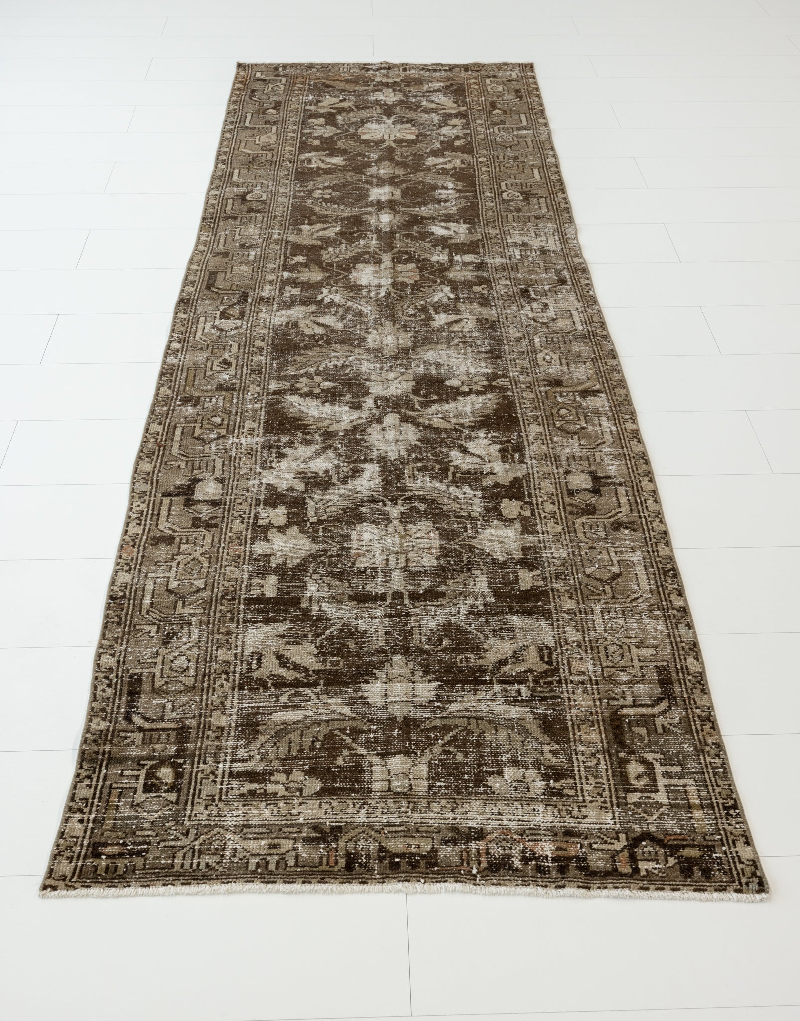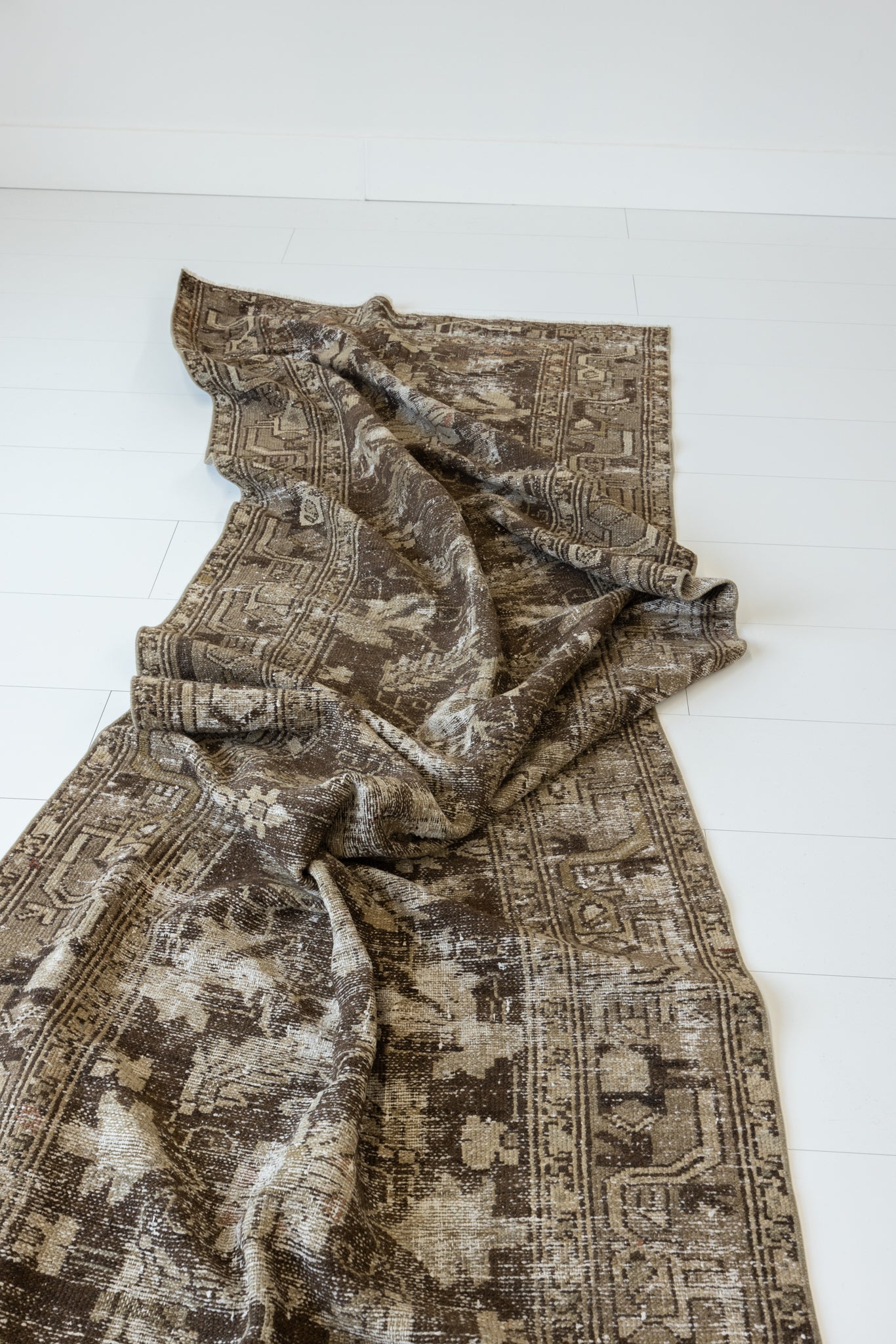 Because of the nature of this item, there may be slight imperfections in its wear, shape, dimensions, and color. Our rugs have been repaired over the years, using various techniques. There might be evidence of these repairs through texture, look and feel. This is all part of the rich history and story of each artistic piece. These markings are not considered defective.