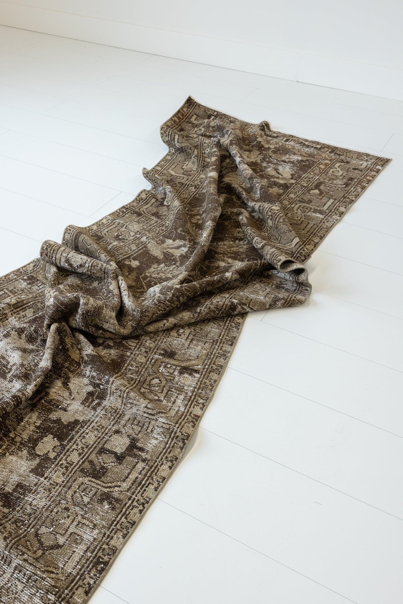 This rug has been professionally cleaned. Spot clean using the blotting technique, using a damp cloth. Take to a professional cleaner if the rug requires a deeper clean.