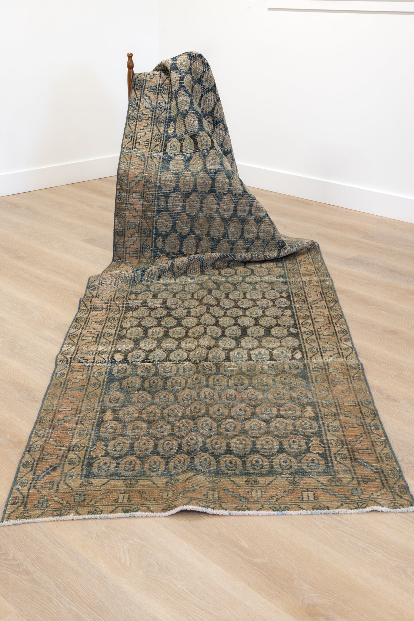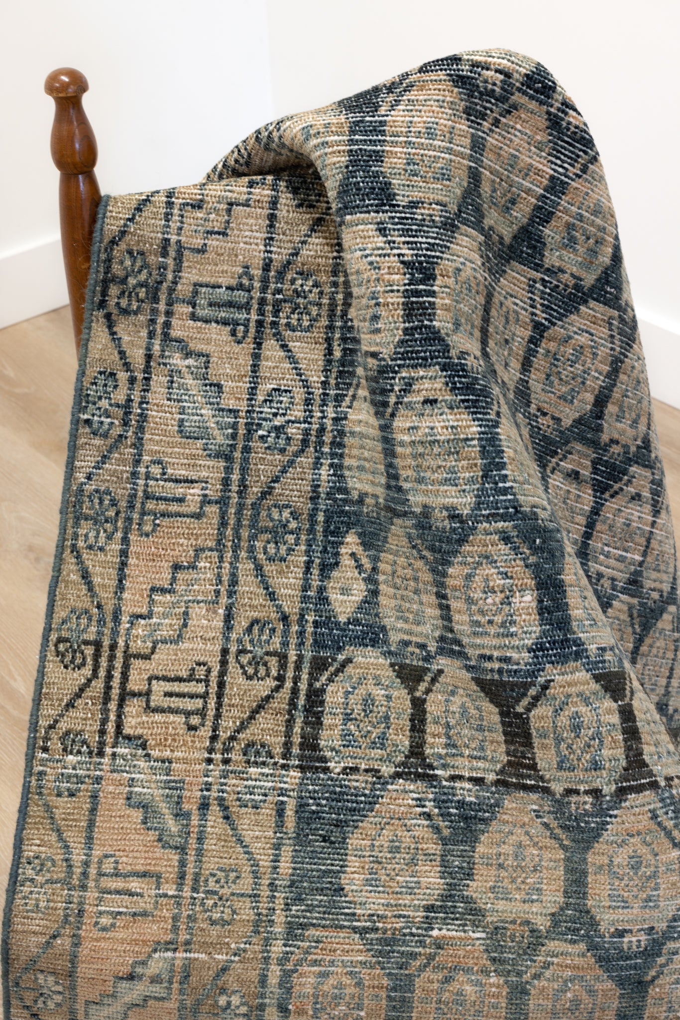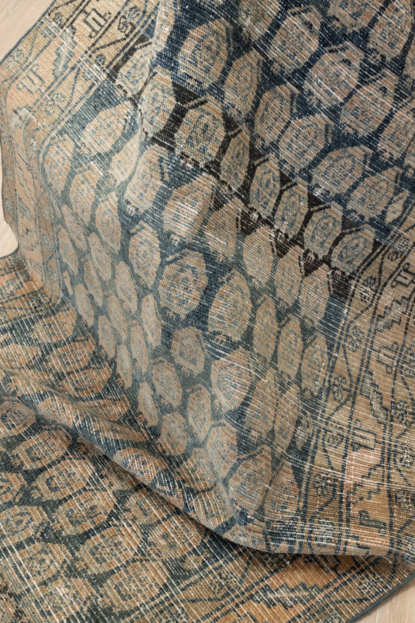 Because of the nature of this item, there may be slight imperfections in its wear, shape, dimensions, and color. Our rugs have been repaired over the years using various techniques. There might be evidence of these repairs through texture, look and feel. This is all part of the rich history and story of each artistic piece. These markings are not considered defective.