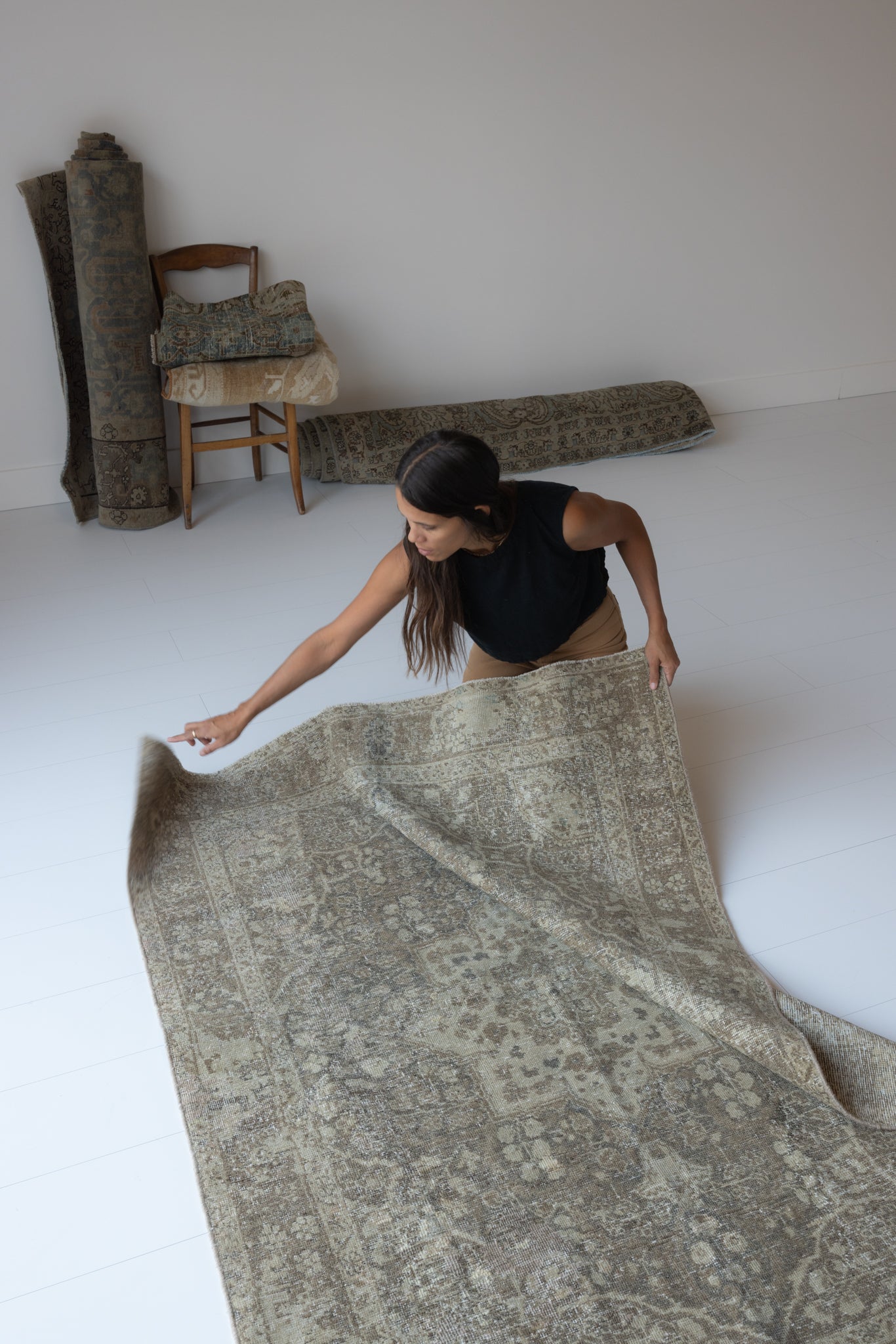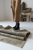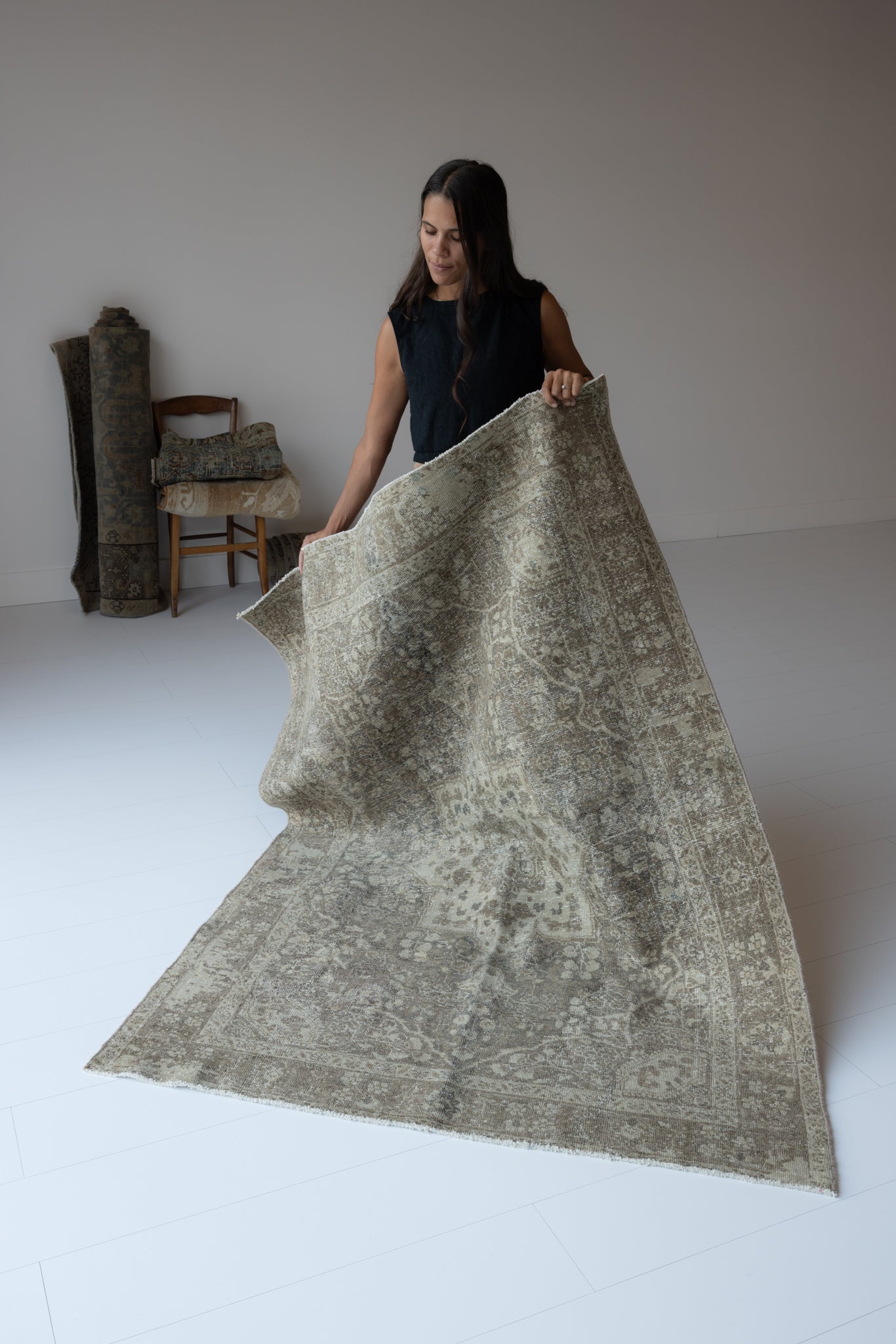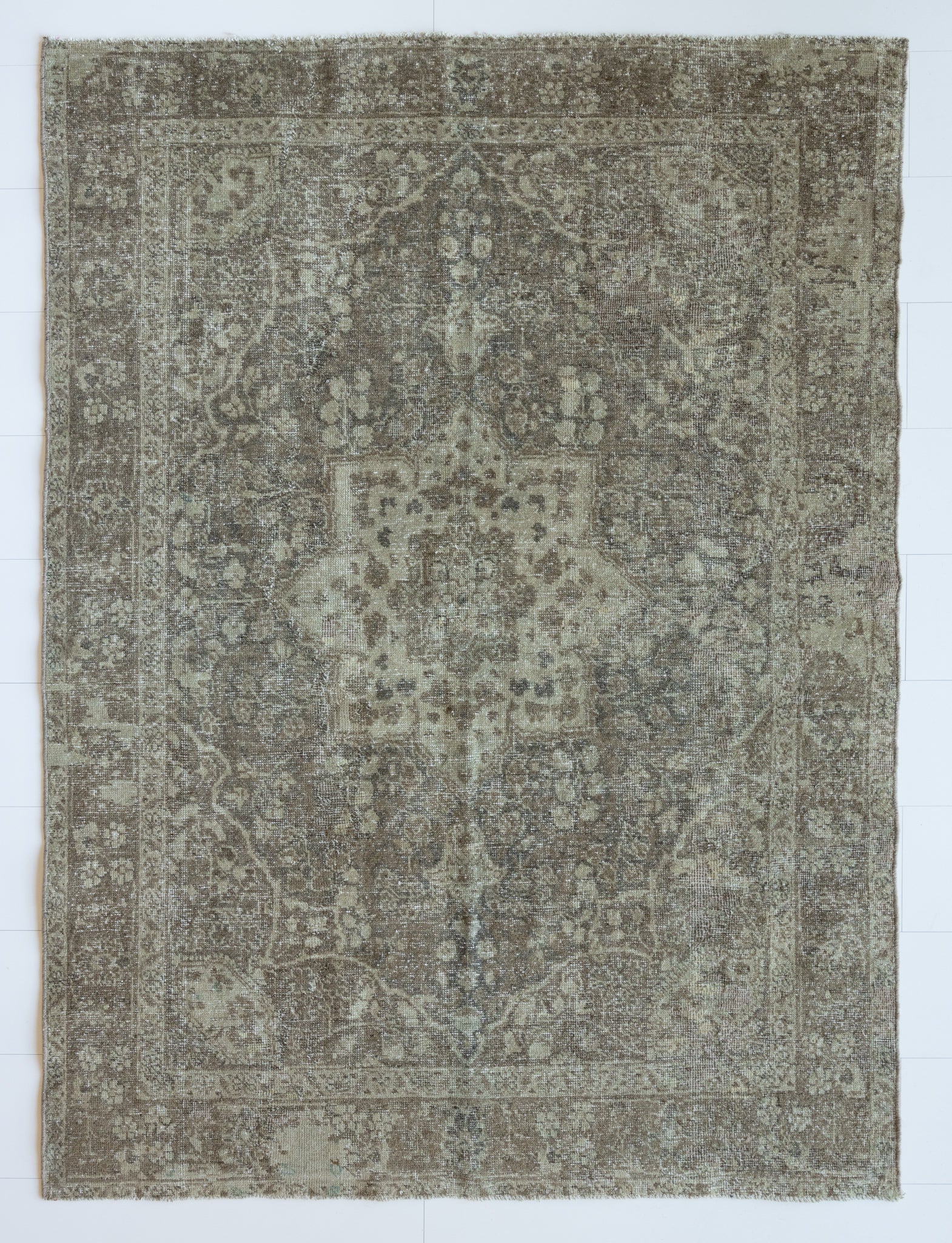 Because of the nature of this item, there may be slight imperfections in its wear, shape, dimensions, and color. Our rugs have been repaired over the years, using various techniques. There might be evidence of these repairs through texture, look and feel. This is all part of the rich history and story of each artistic piece. These markings are not considered defective.