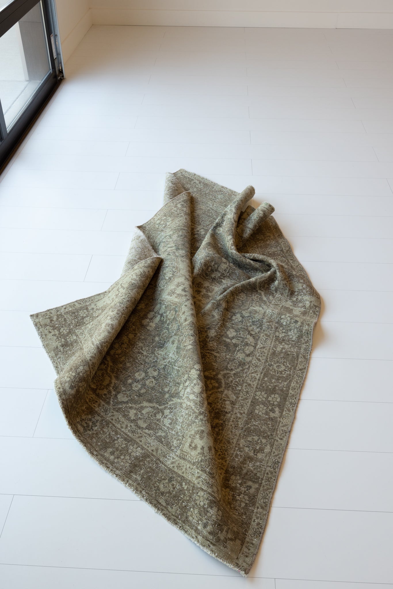 This rug has been professionally cleaned. Spot clean using the blotting technique, using a damp cloth. Take to a professional cleaner if the rug requires a deeper clean.