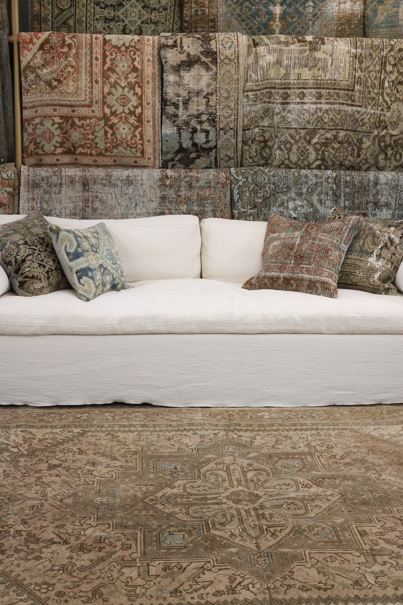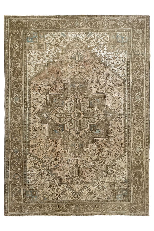 Because of the nature of this item, there may be slight imperfections in its wear, shape, dimensions, and color. Our rugs have been repaired over the years using various techniques. There might be evidence of these repairs through texture, look and feel. This is all part of the rich history and story of each artistic piece. These markings are not considered defective.